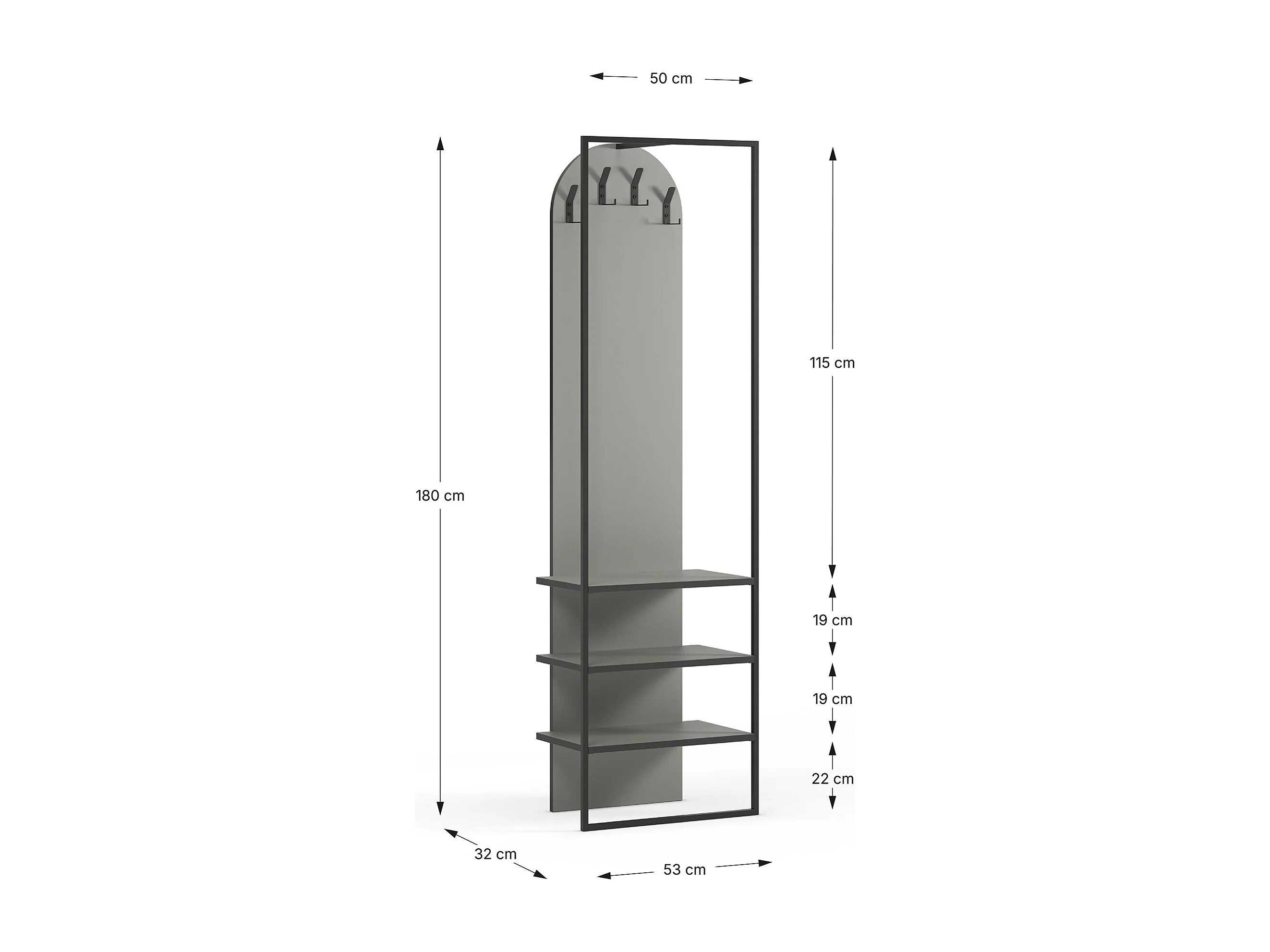 Meuble d'entrée, Buffet d'entrée aspect bois coloris Vert et métal noir - Longueur 53 x Profondeur 31,70 x Hauteur 180 cm