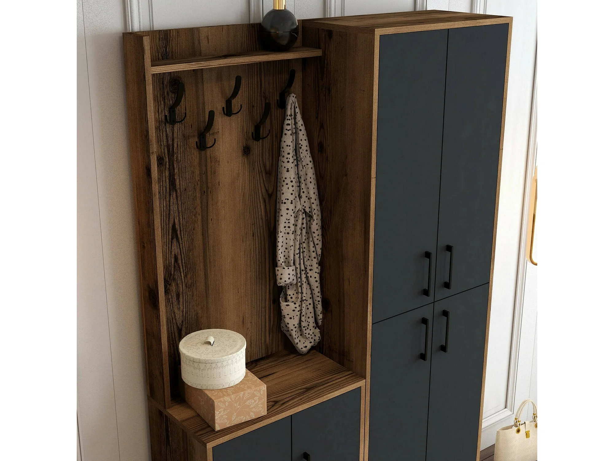 Meuble d'entrée Castor, Crochet d'entrée, Composition pour l'atrium, Console de rangement multifonction, 120x35h200 cm, Noyer et Anthracite