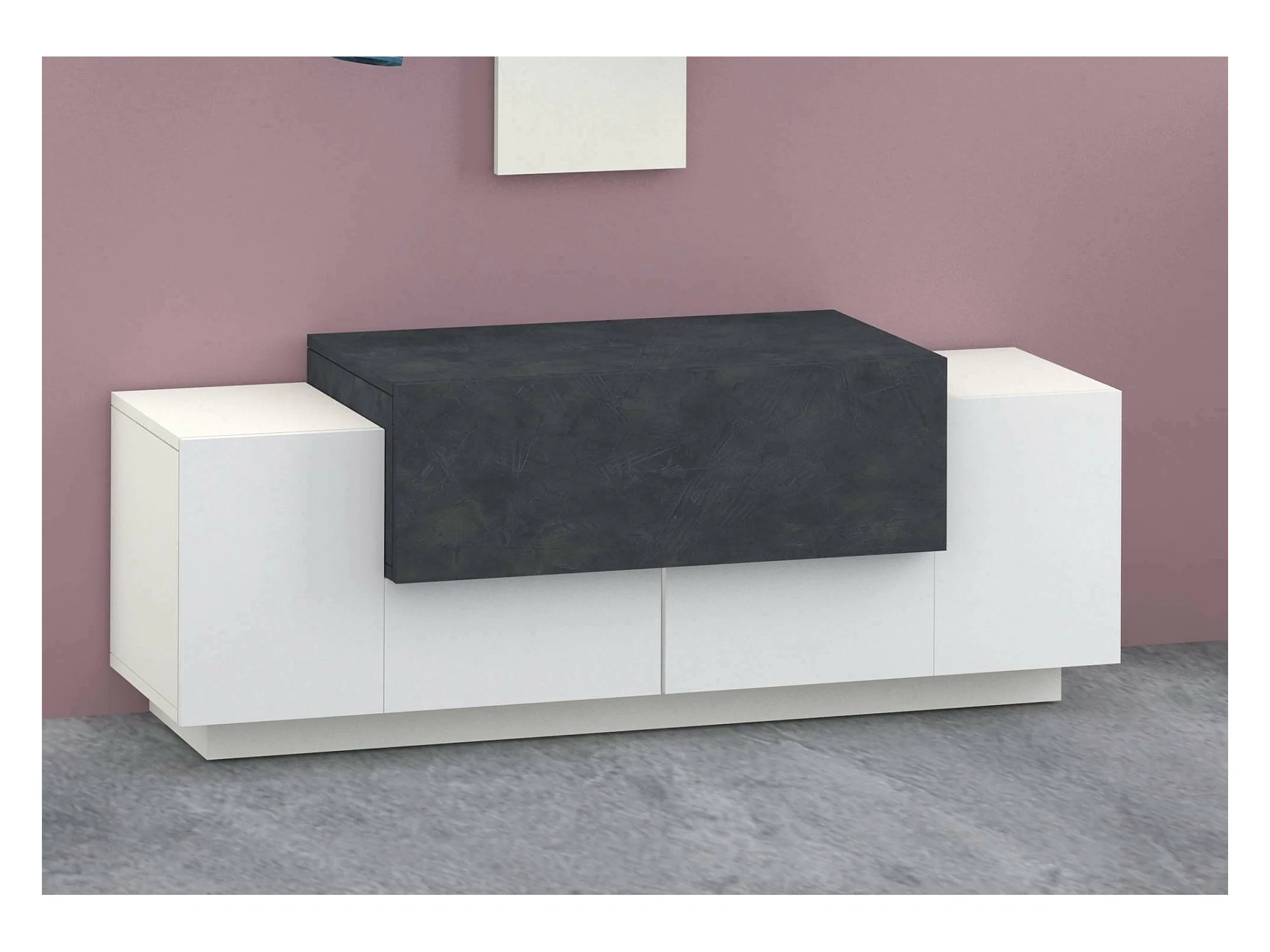 Meuble d'entrée Djallo, entrée multifonction moderne, casier polyvalent pour hall d'entrée, 100% Made in Italy, 120x45h46 cm, blanc brillant et ardoise