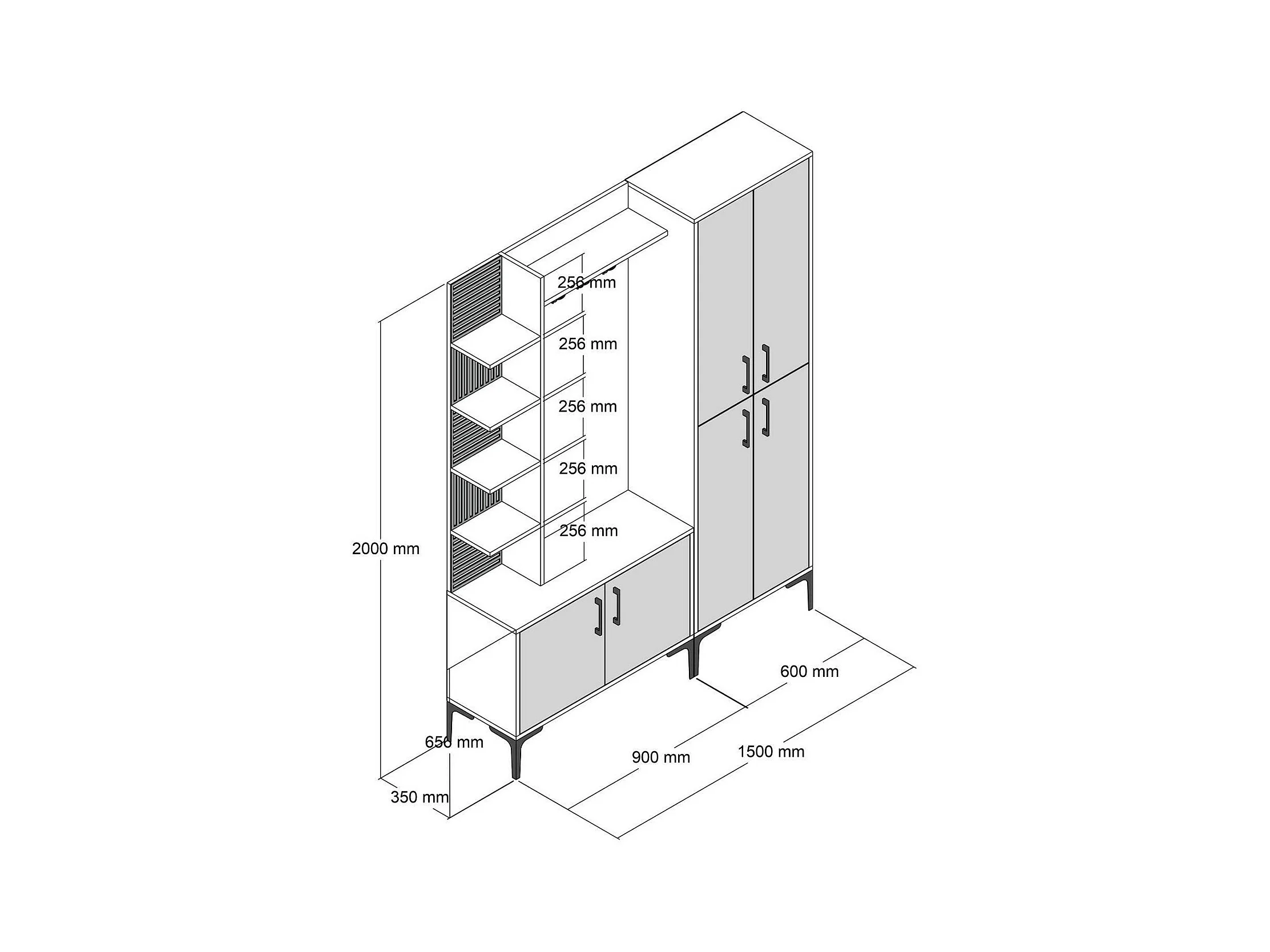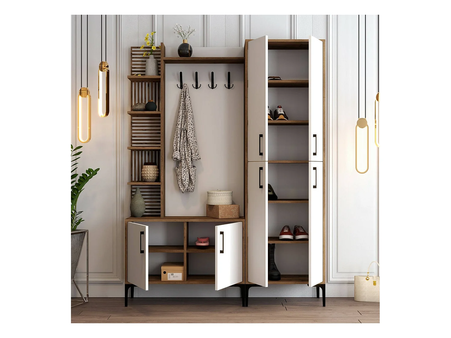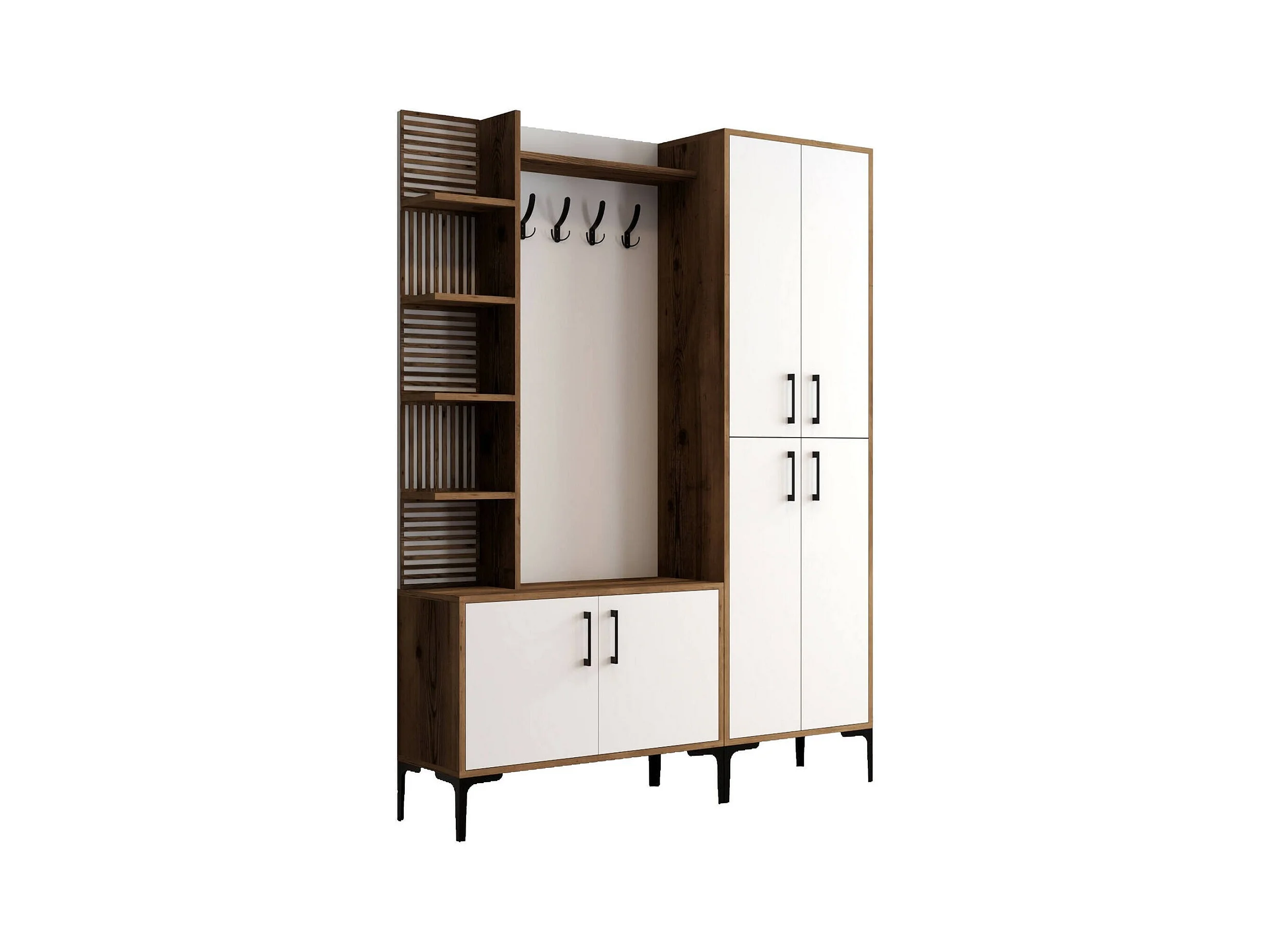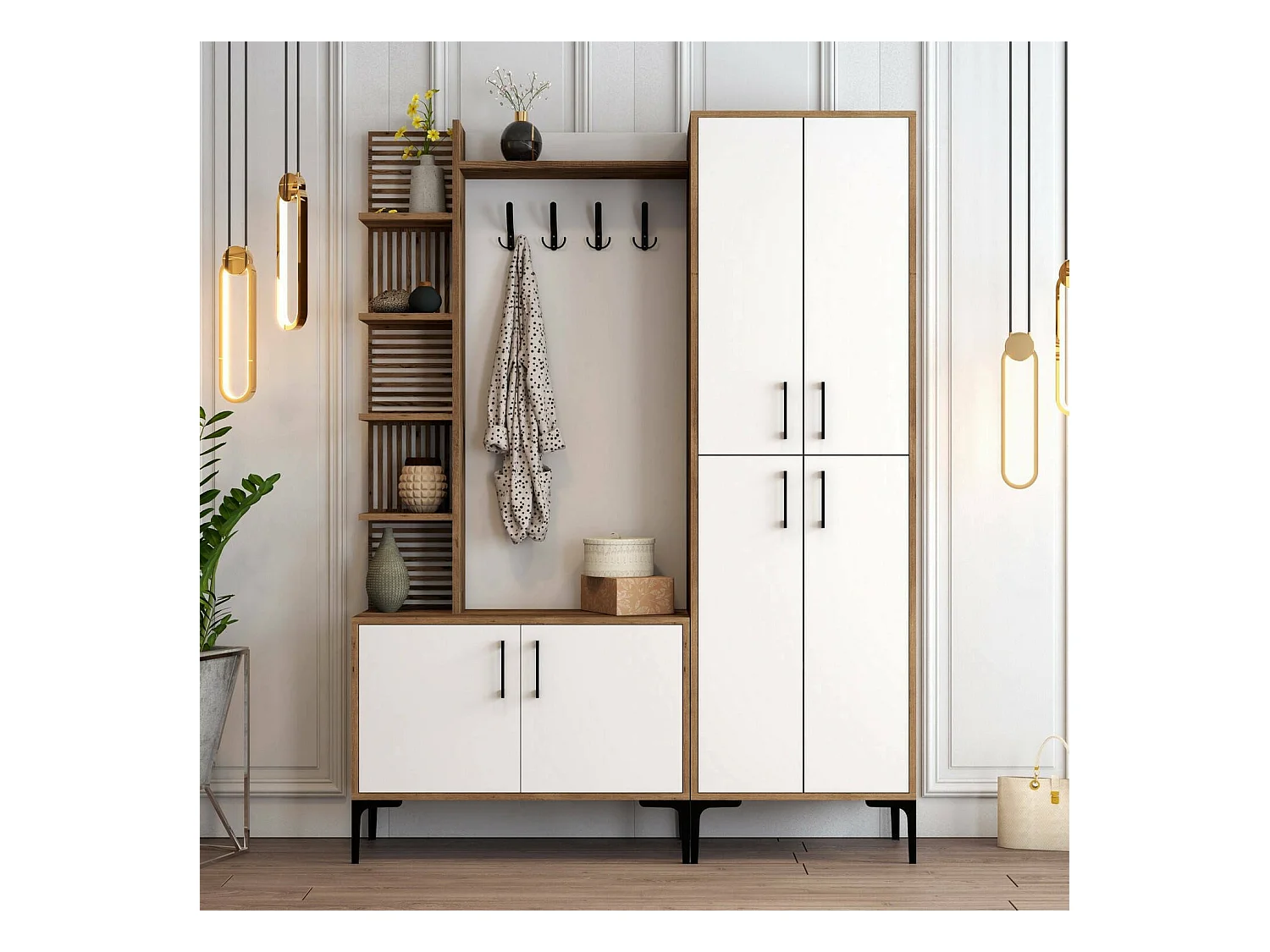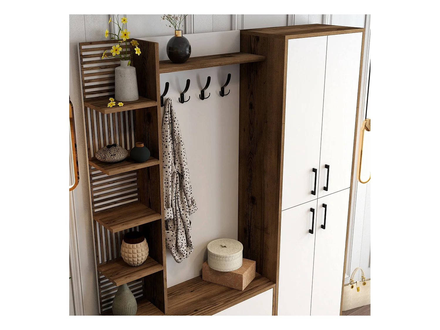 Meuble d'entrée Dradunovi, Crochet d'entrée, Composition pour l'atrium, Console de rangement multifonction, 150x200 h35 cm, Noyer et Blanc