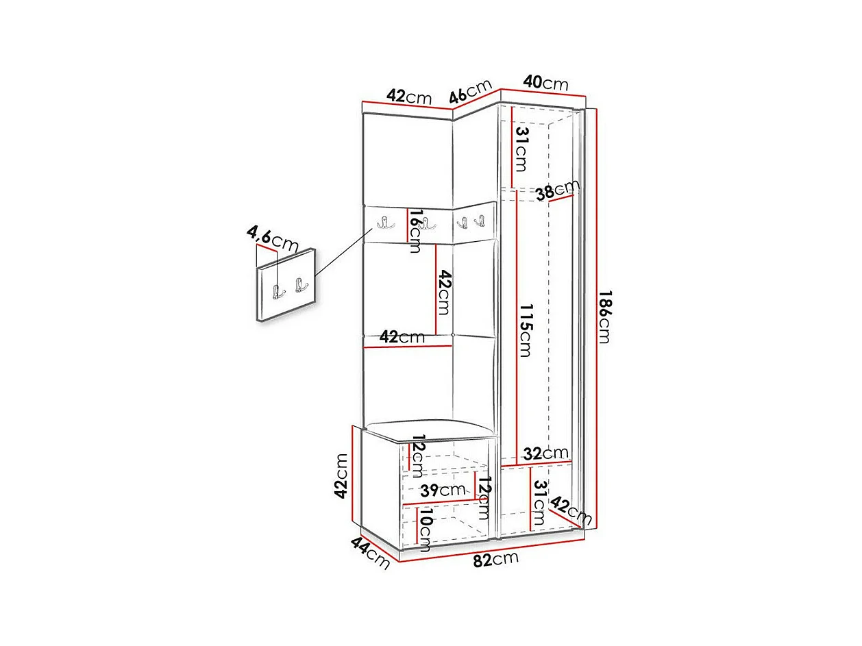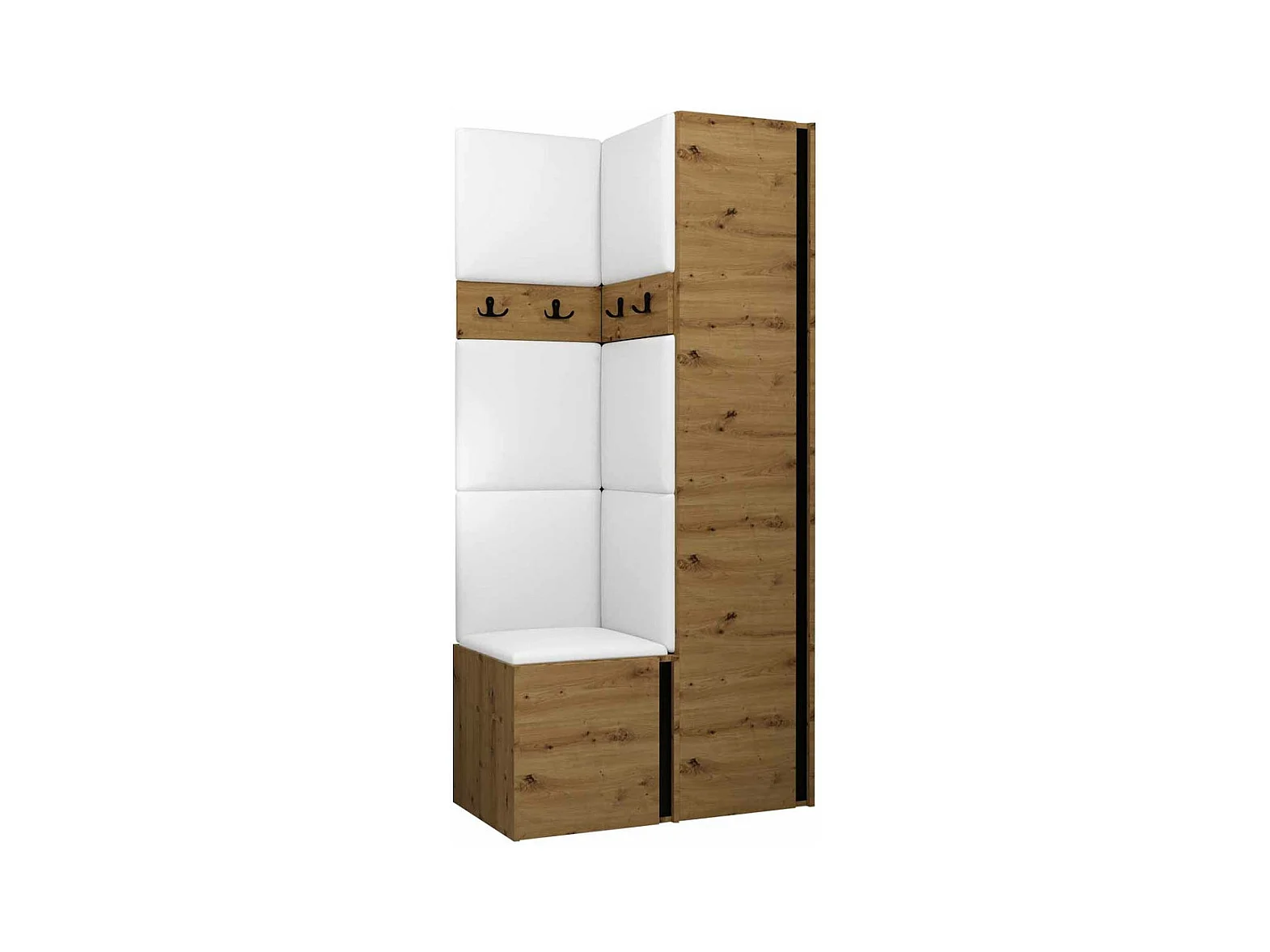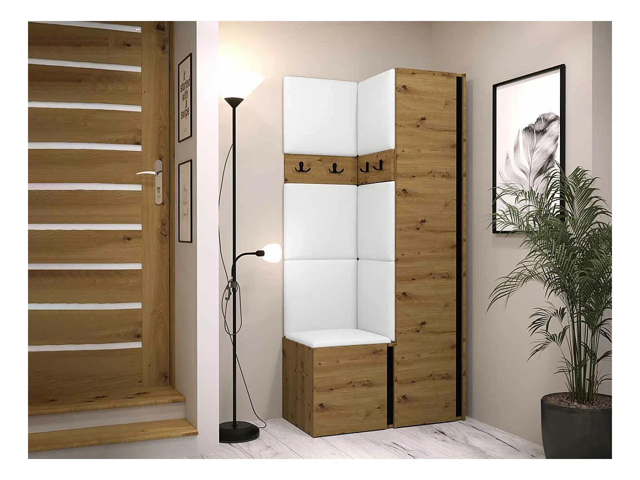 Meuble d'entrée Hartford 348, 186x82x44cm, Chêne Artisan|Noir, Faux cuir|Stratifié