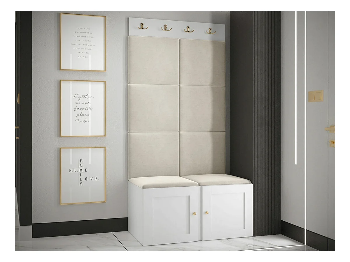 Meuble d'entrée Hartford 375, 186x84x46cm, Brun clair|Blanc, Tapisserie|MDF|Stratifié