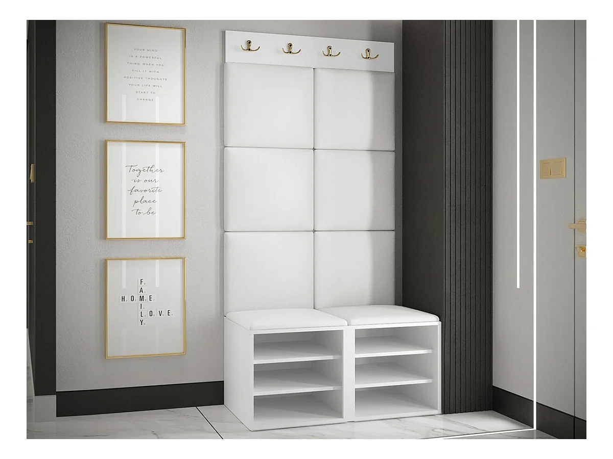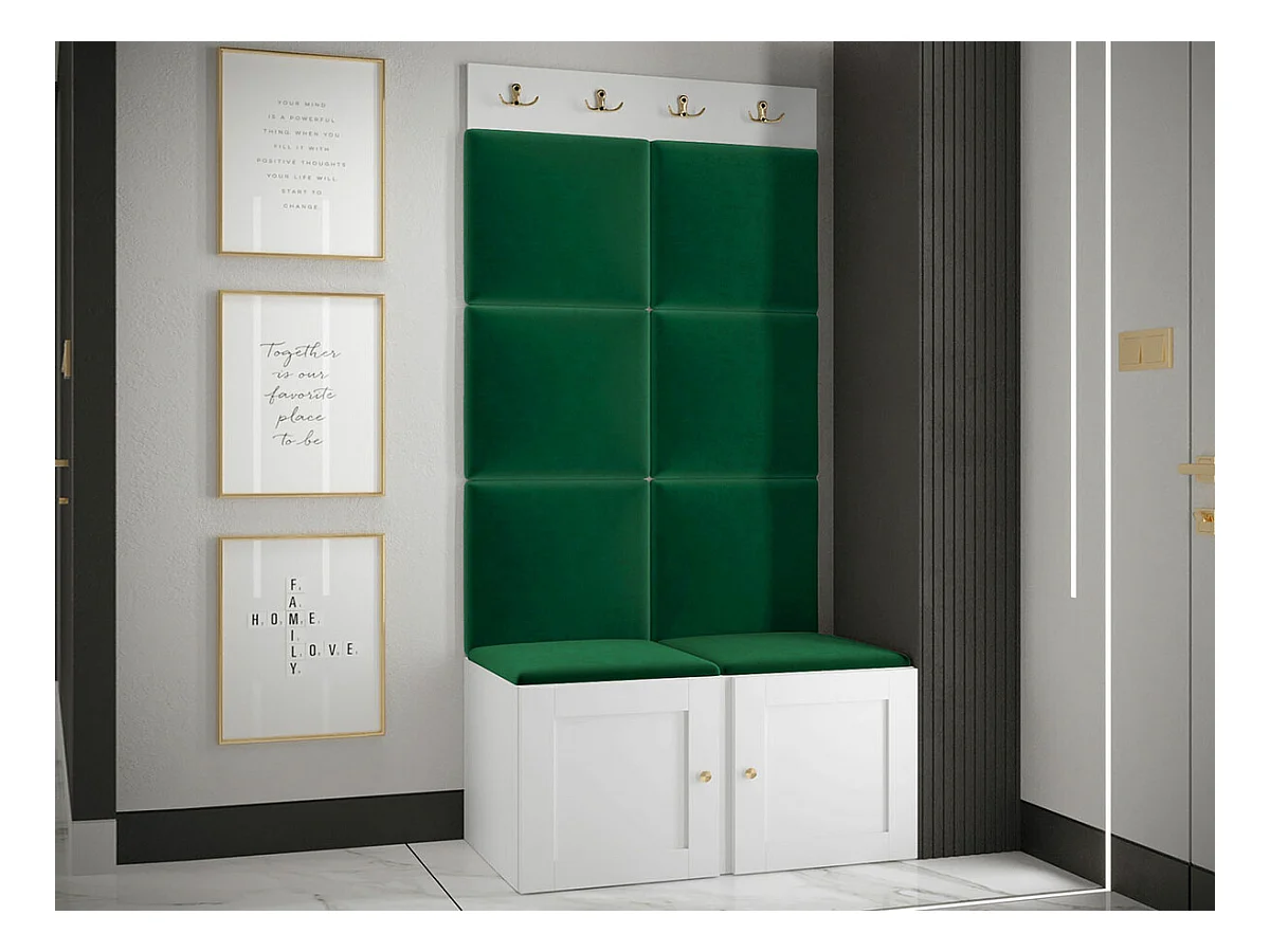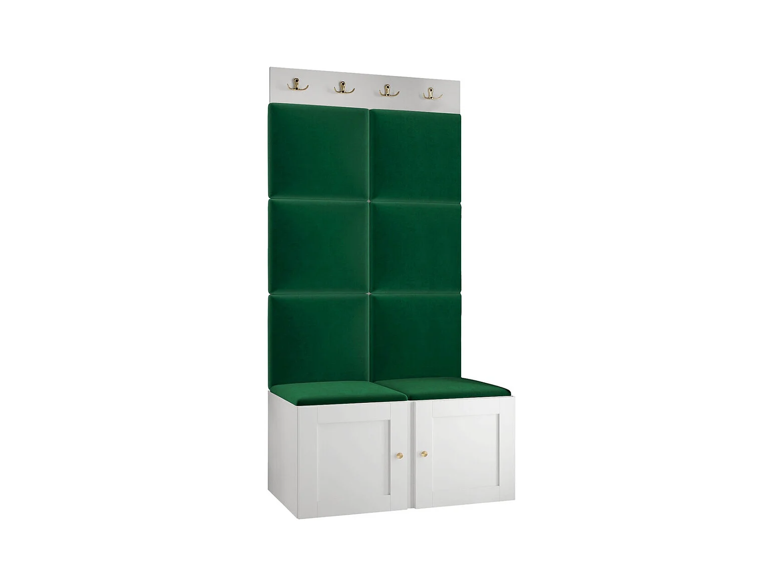 Meuble d'entrée Hartford 375, 186x84x46cm, Blanc|Vert, Stratifié|Tapisserie|MDF