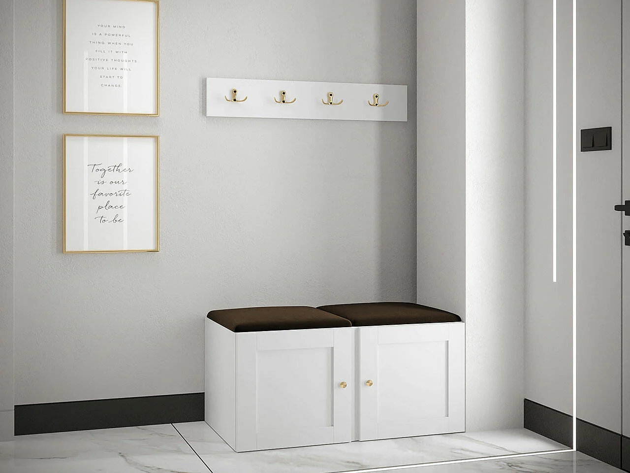 Meuble d'entrée Hartford 376, Blanc|Marron, Tapisserie|MDF|Stratifié, À poser|À suspendre