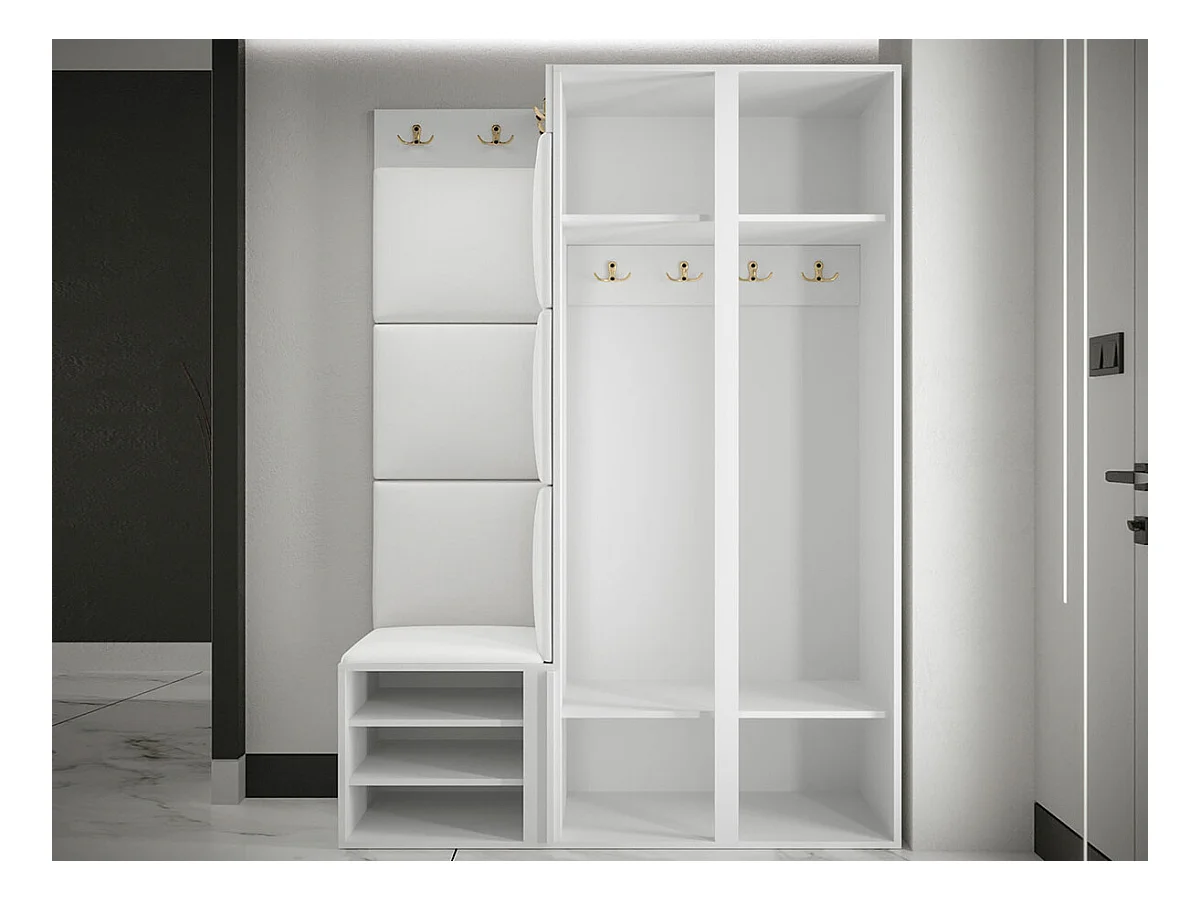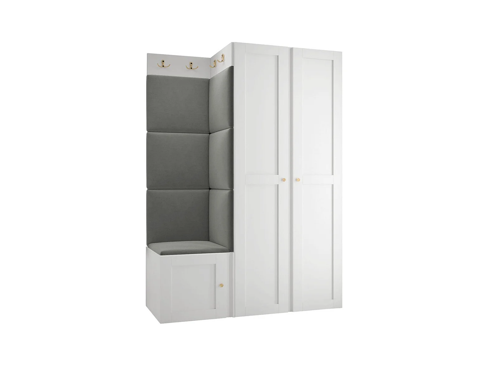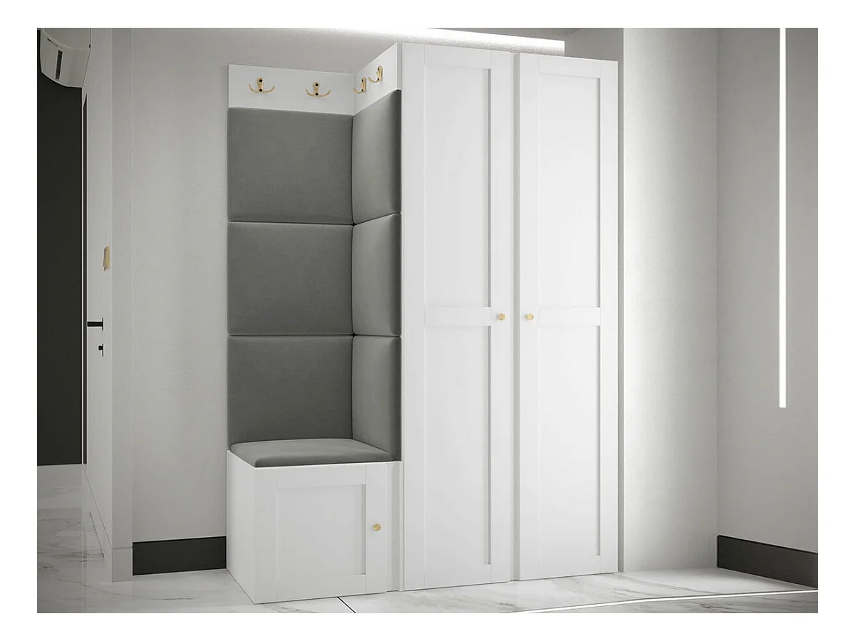 Meuble d'entrée Hartford 379, 186x116x46cm, Blanc|Gris, Tapisserie|MDF|Stratifié