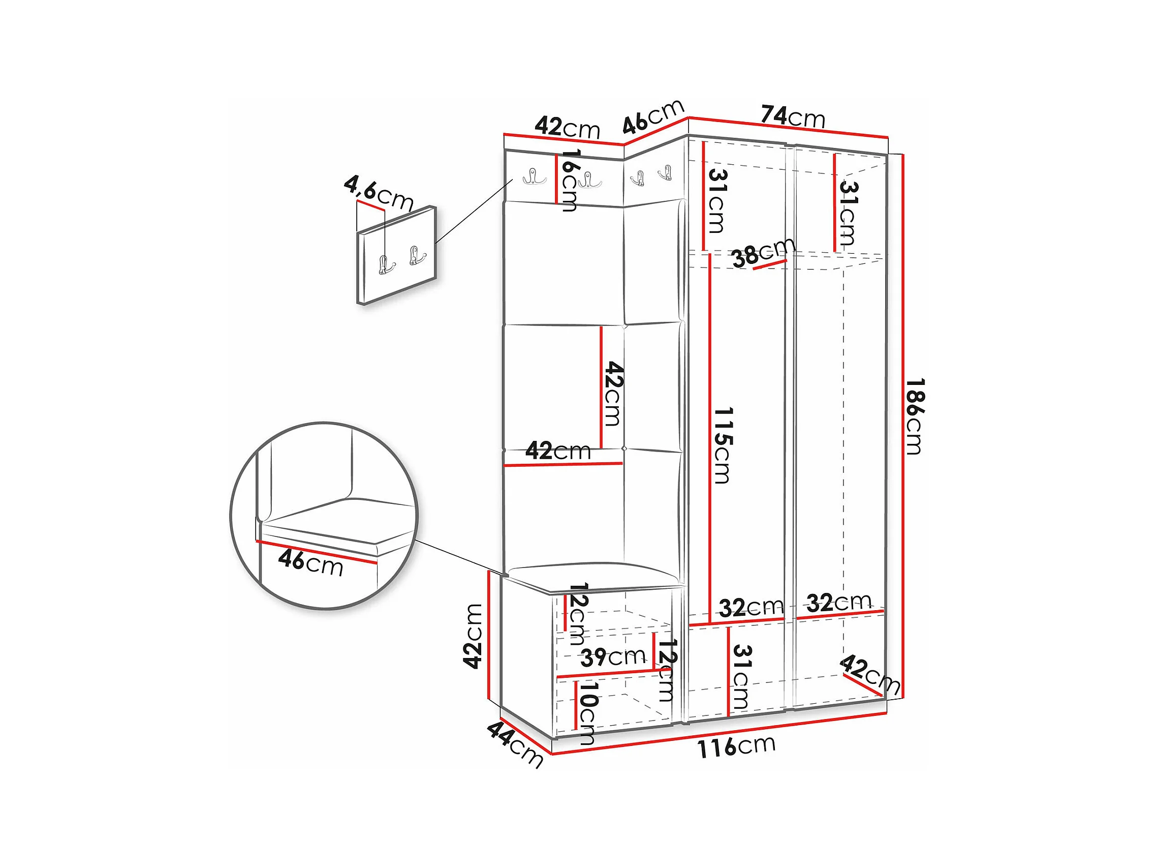 Meuble d'entrée Hartford 379, 186x116x46cm, Marron|Blanc, Stratifié|Tapisserie|MDF