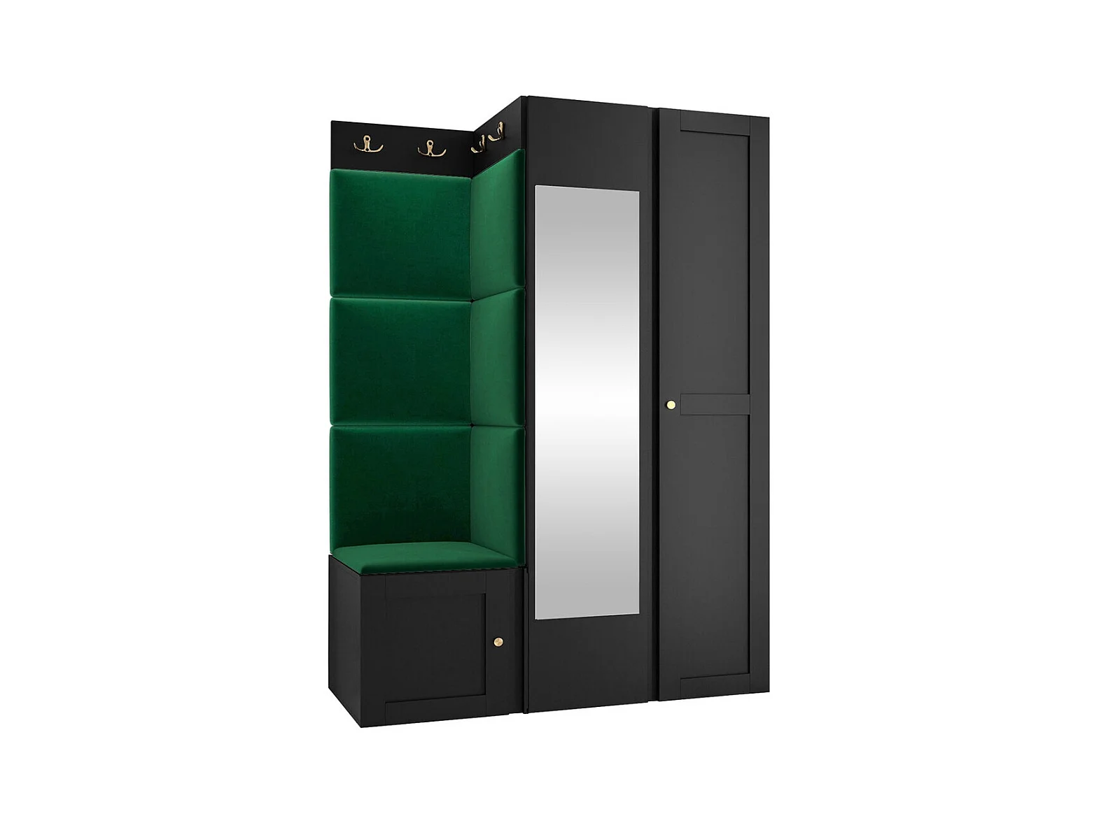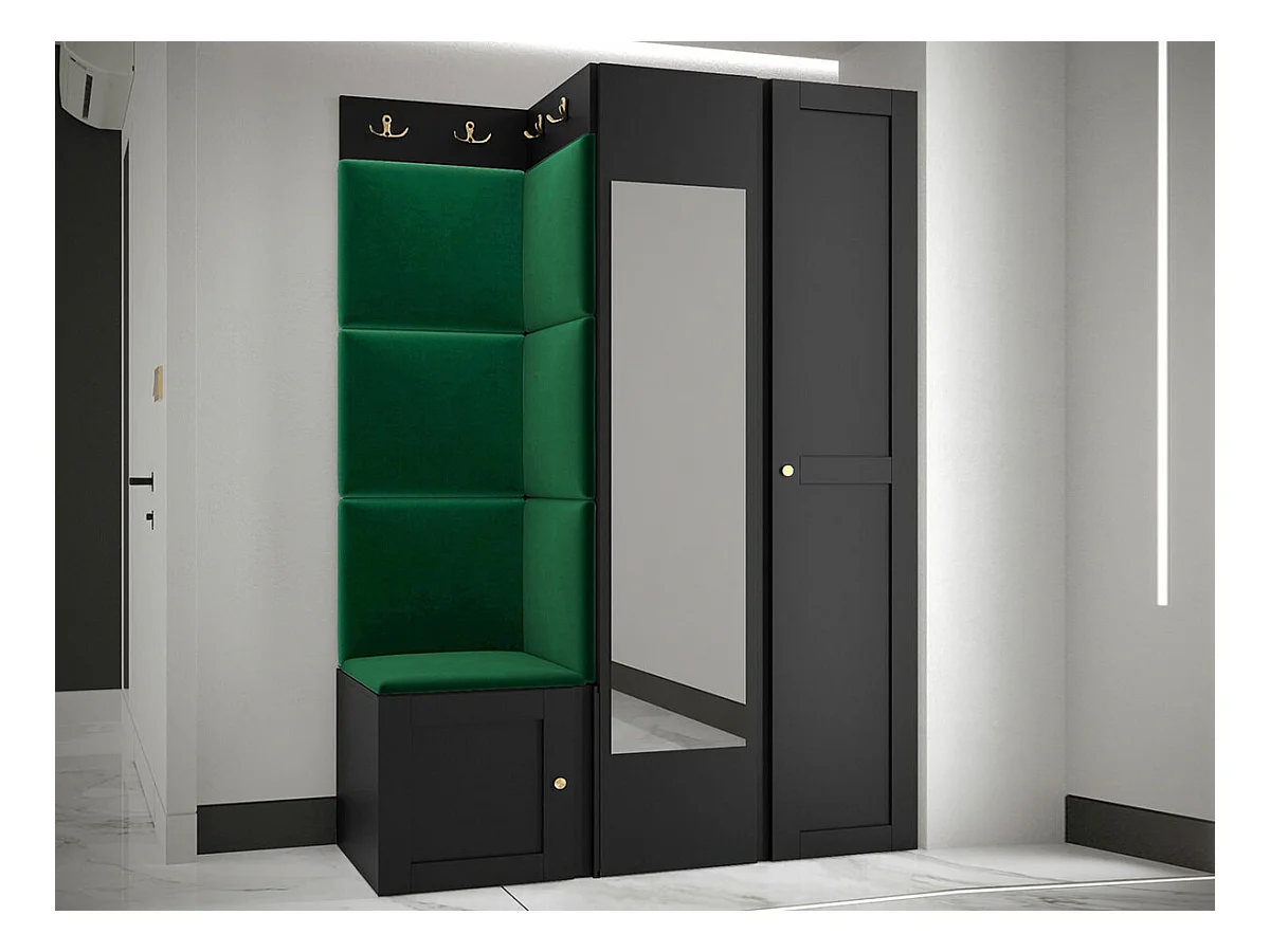 Meuble d'entrée Hartford 380, 186x116x46cm, Miroir, Noir|Vert, Stratifié|Tapisserie|MDF