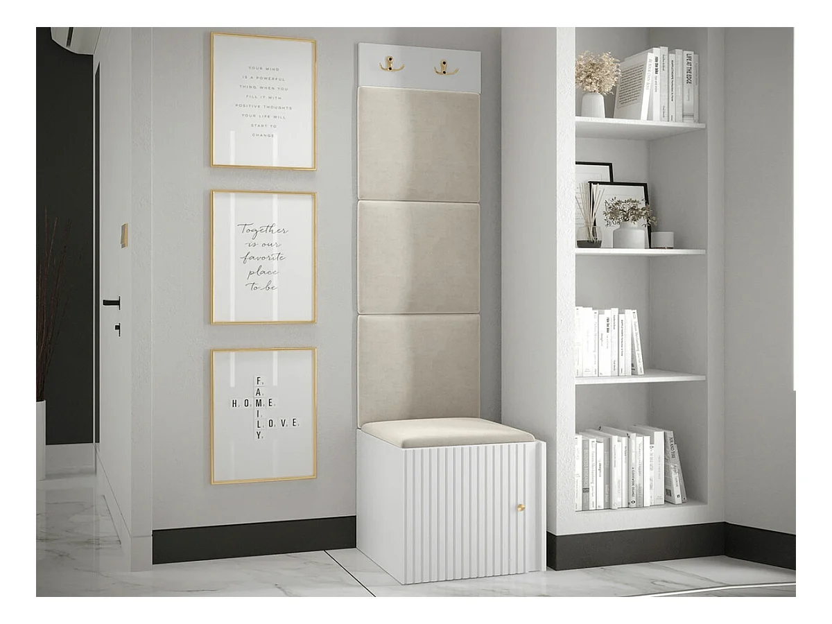 Meuble d'entrée Hartford 386, 186x42x46cm, Brun clair|Blanc, Tapisserie|MDF|Stratifié