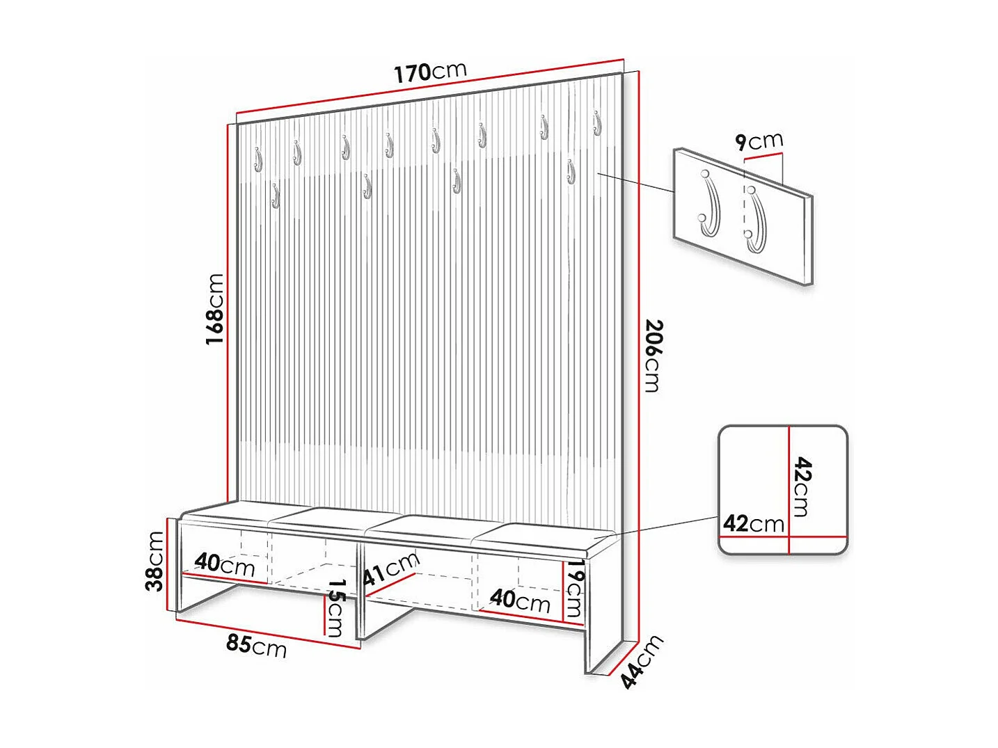 Meuble d'entrée Hartford 485, 206x170x44cm, Stratifié|Faux cuir, À poser