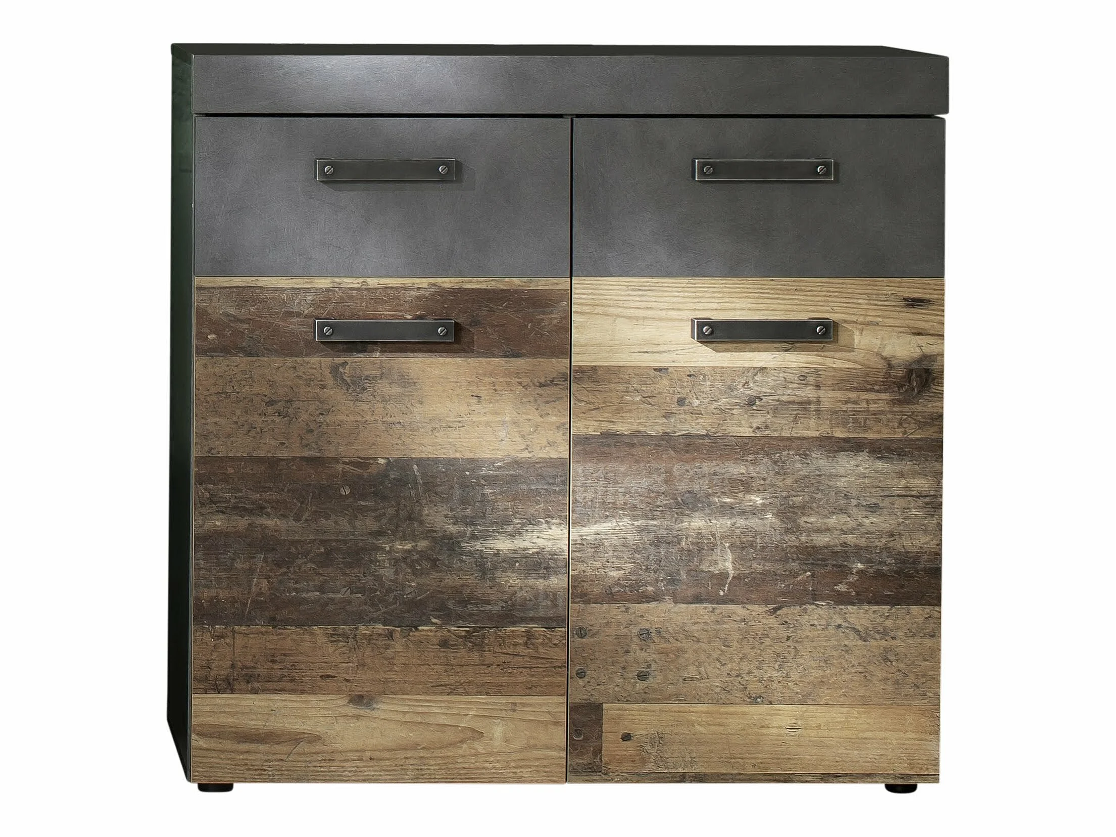 Meuble d'entrée - Meuble de rangement ou à chaussures en mélaminé coloris bois vieilli finition gris ciment. L - H - P : 90 - 89 - 34 cm