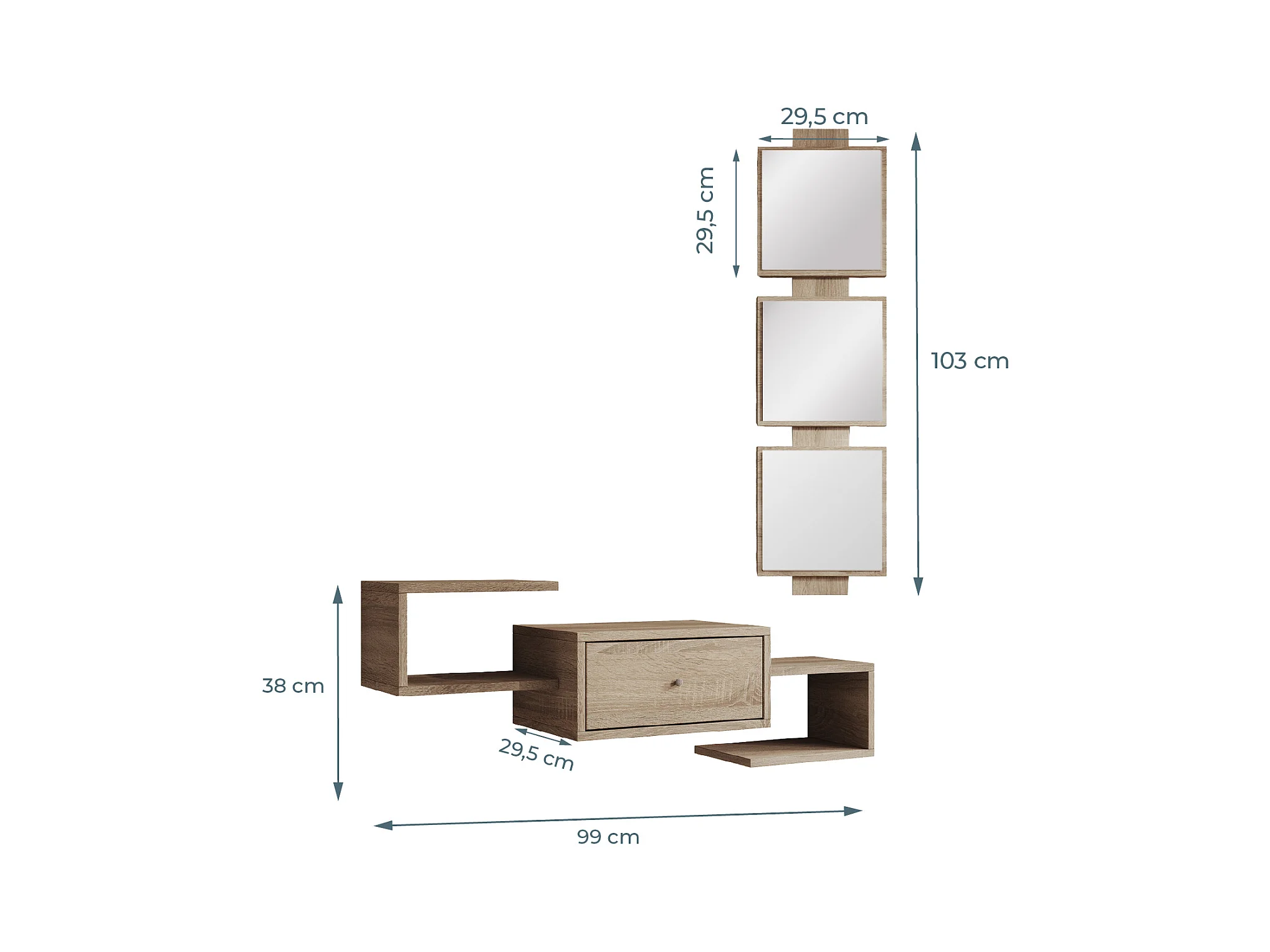Meuble d'entrée pour Hall d'entrée Couloir en Sonoma 99,5x22x145cm Neo