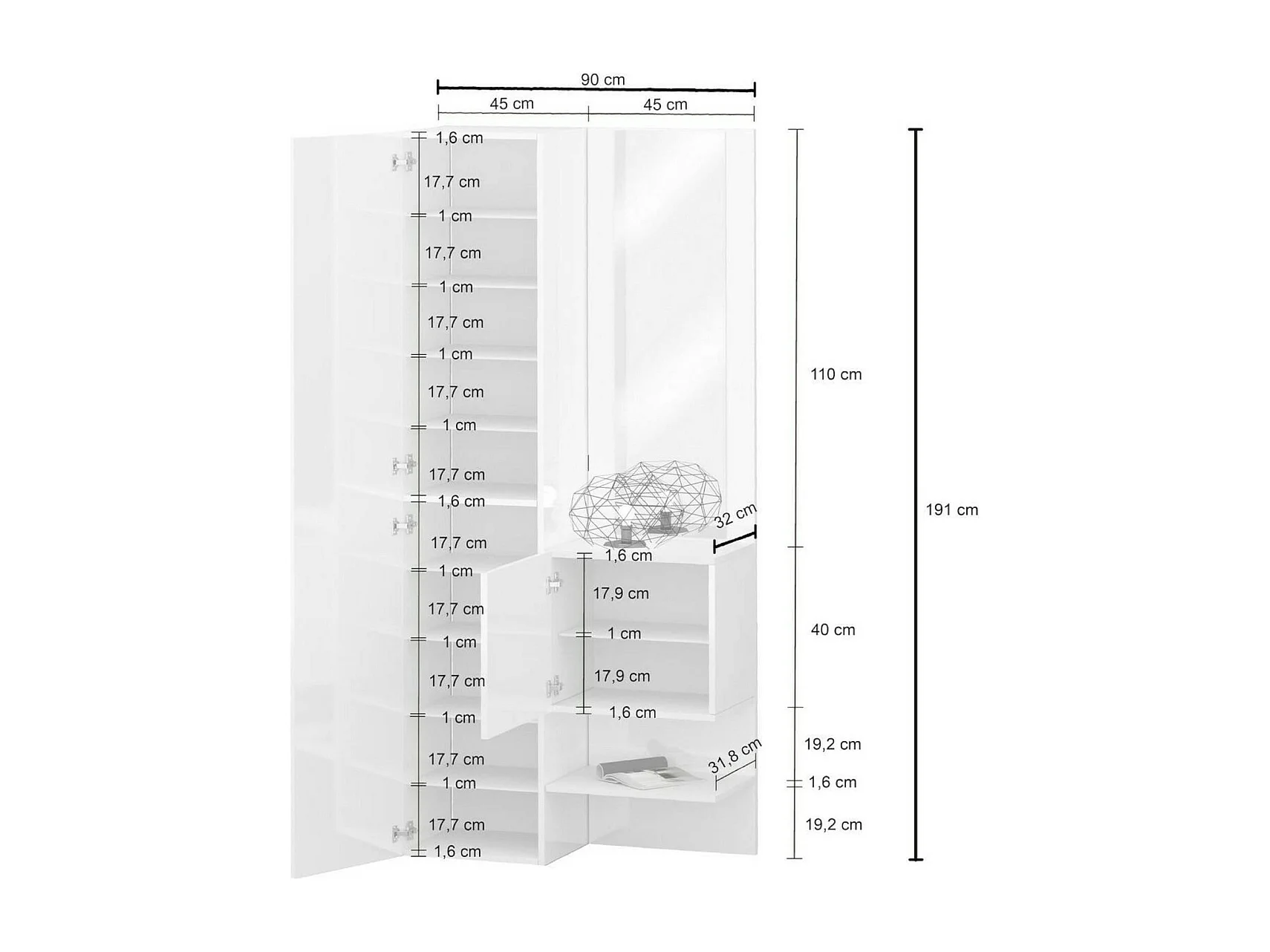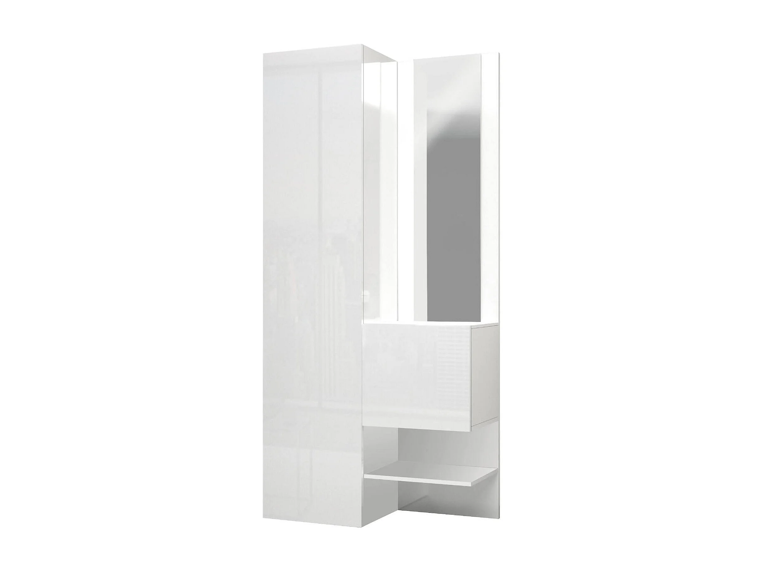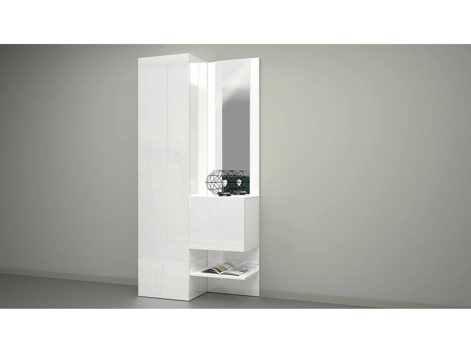 Meuble d'entrée Vinicio, Armoire multifonctionnelle avec 2 portes, Armoire polyvalente avec miroir, 90x35h190 cm, Blanc