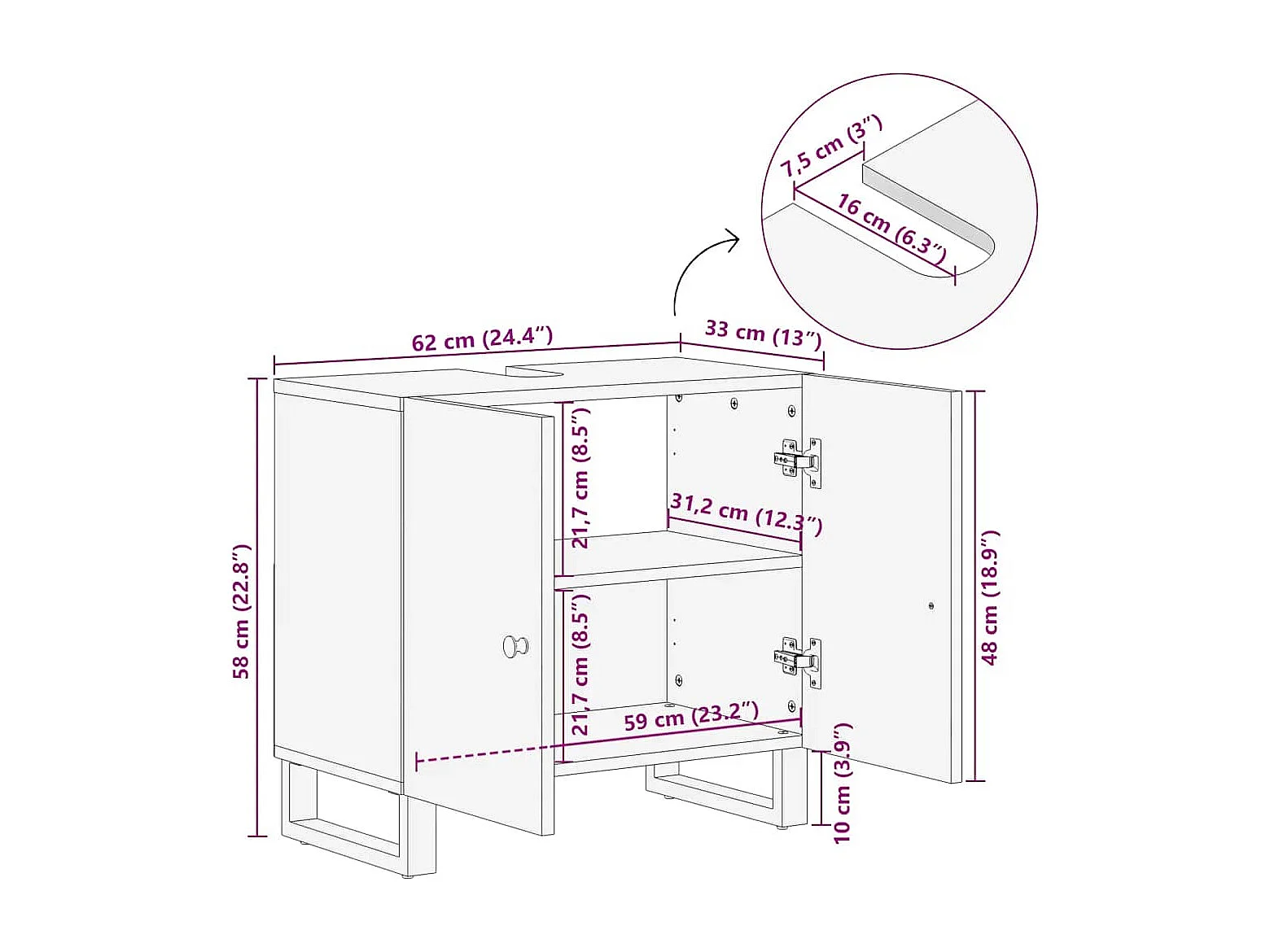 Armoire de salle de bain 38x33x58cm bois massif de récupération