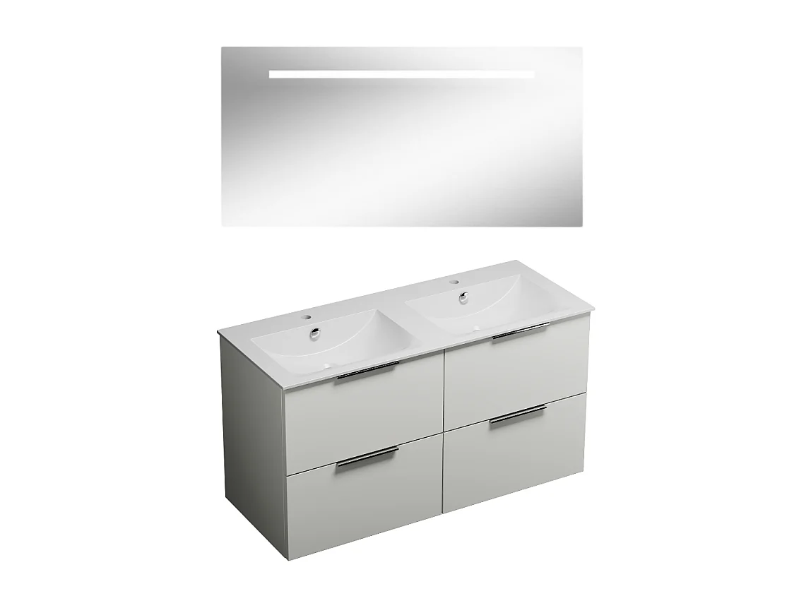 Meuble double vasque 120 cm BURGBAD Olena blanc brillant + miroir