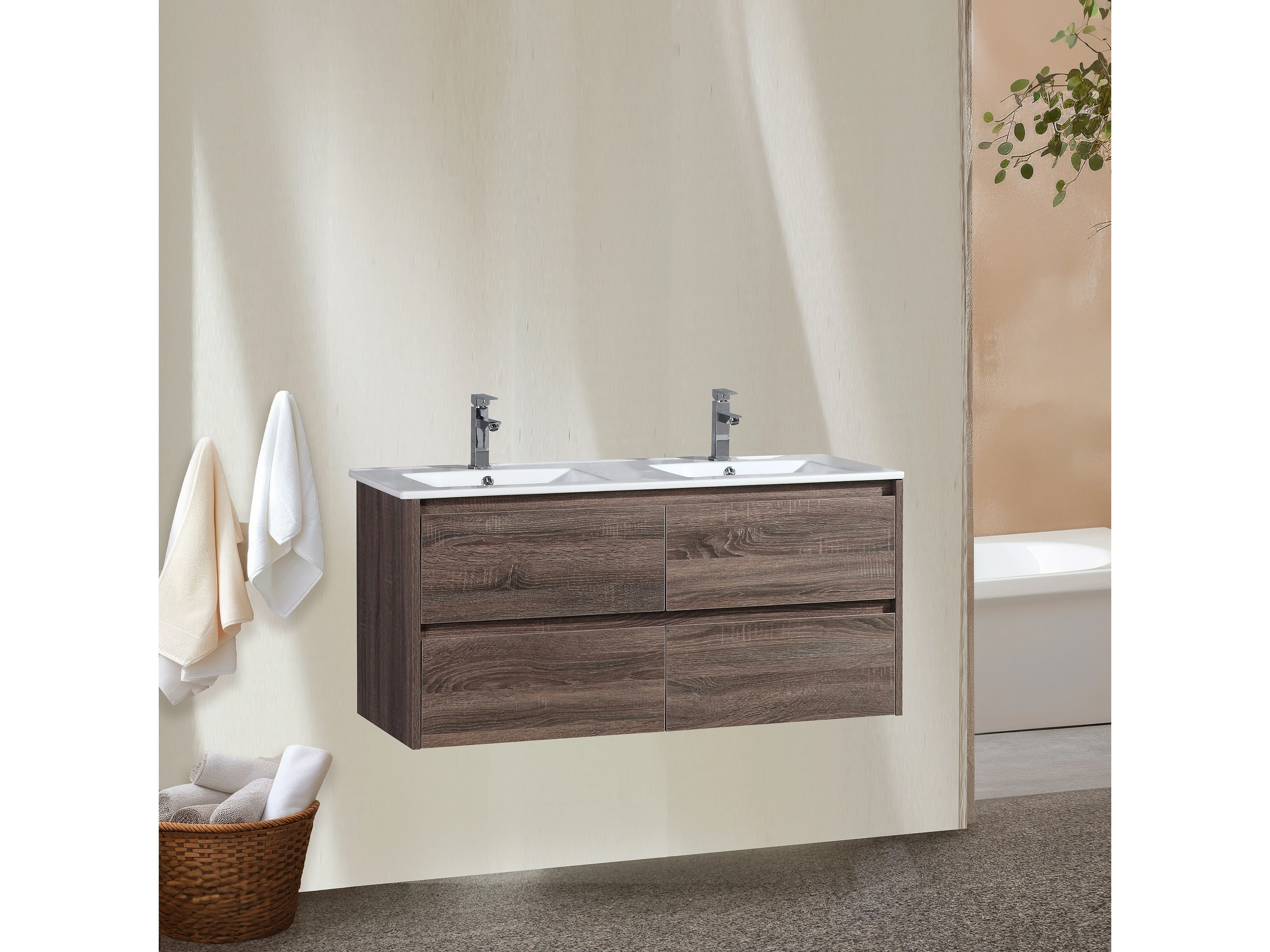 Meuble double vasque 120 cm chêne californien brun Aquadoli