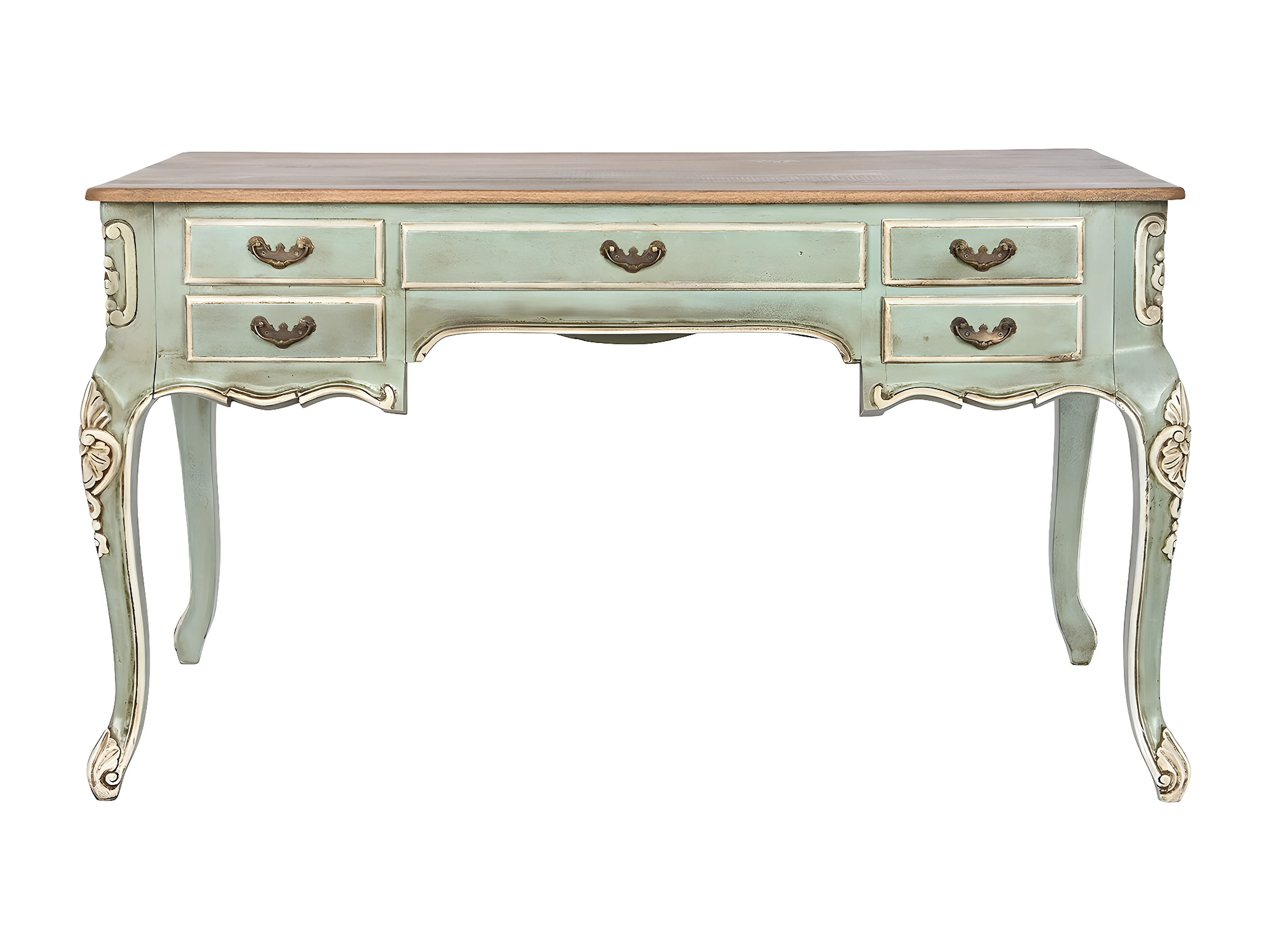 Meuble du bureau, meuble de bureau avec 5 tiroirs en bois coloris vert - longueur 75 x profondeur 133 x Hauteur 68 cm