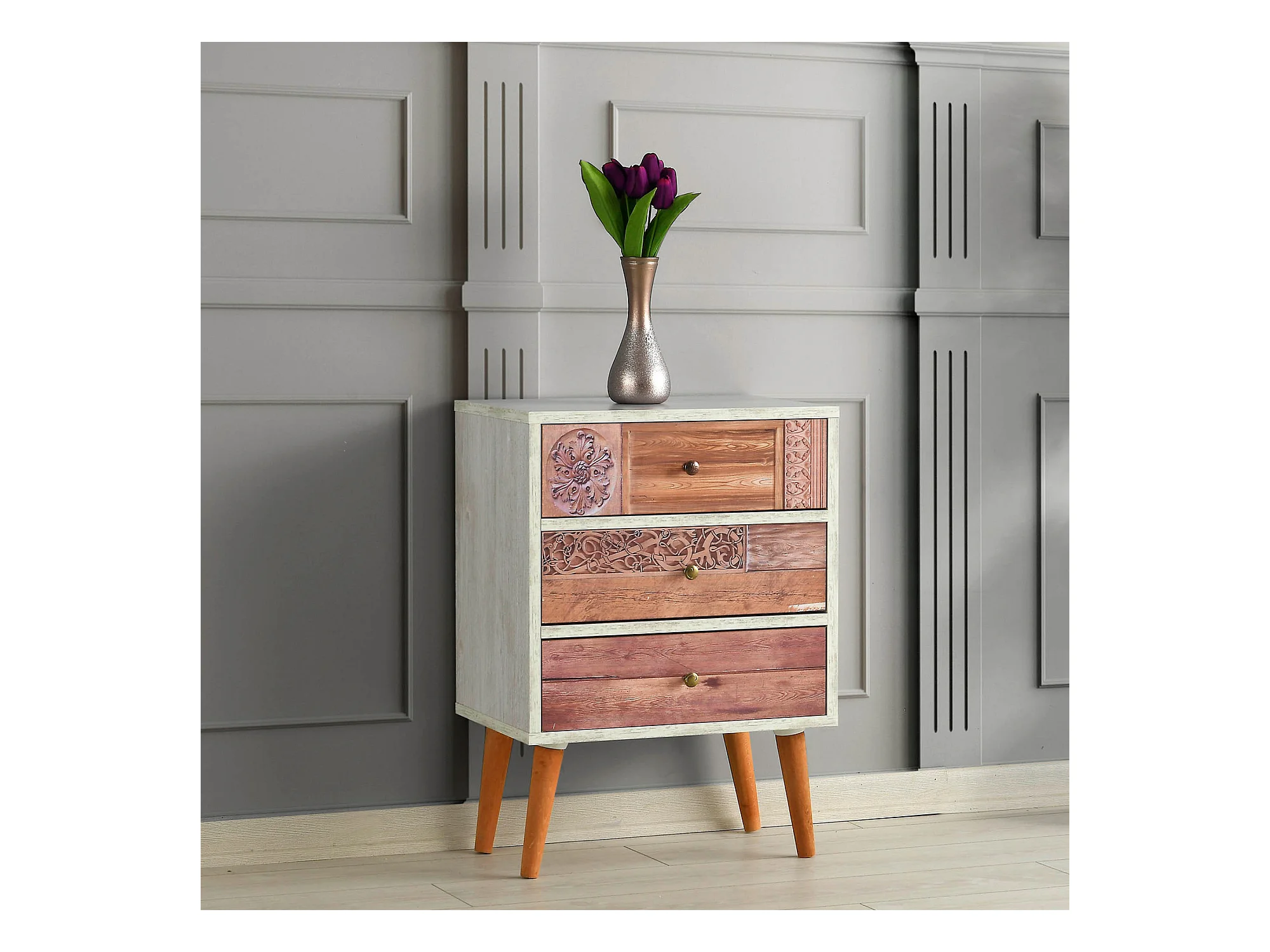 Meuble En Noyer Blanc Avec Panneau De Particules 100% Mélaminé. 50x68x35