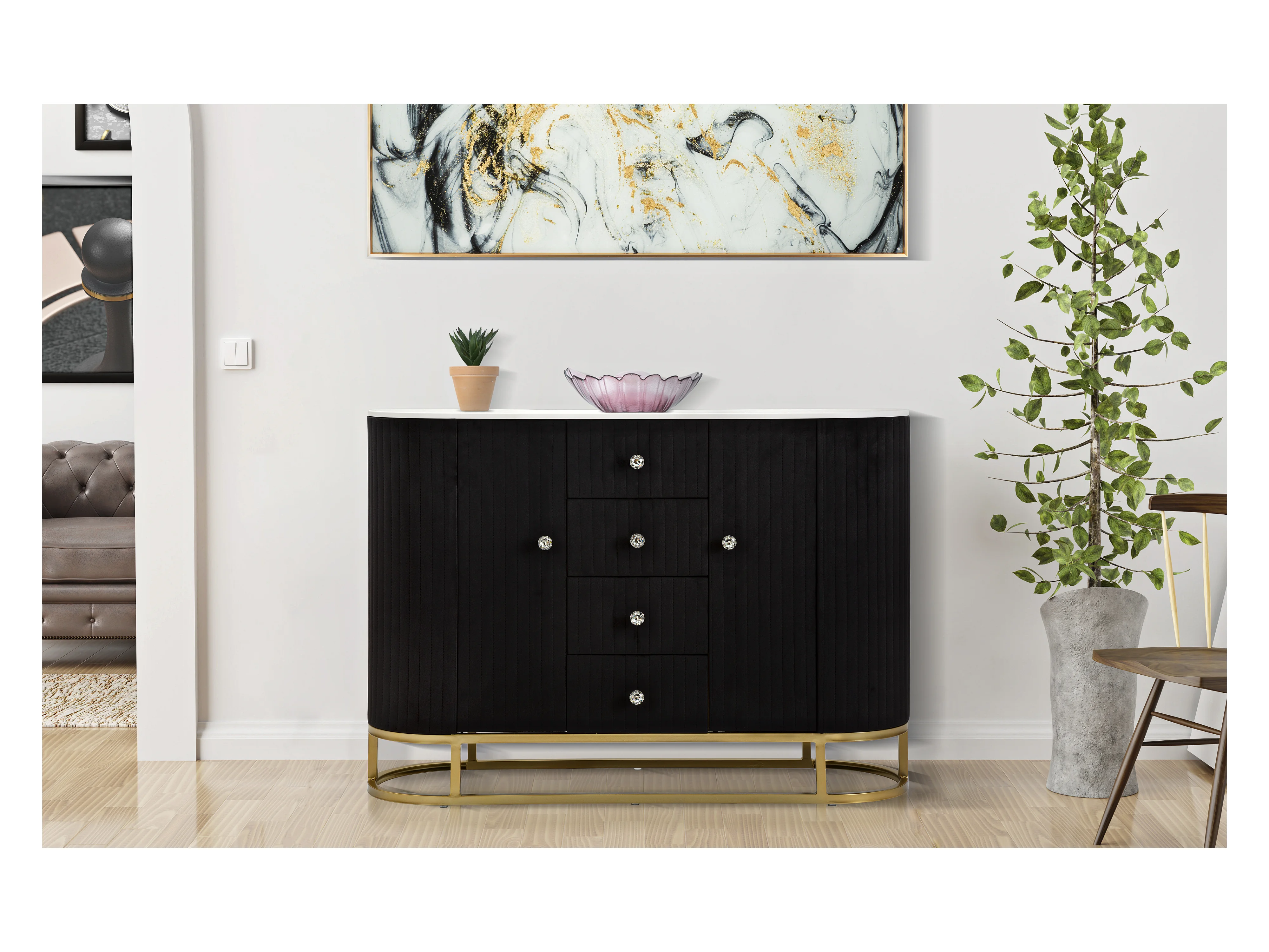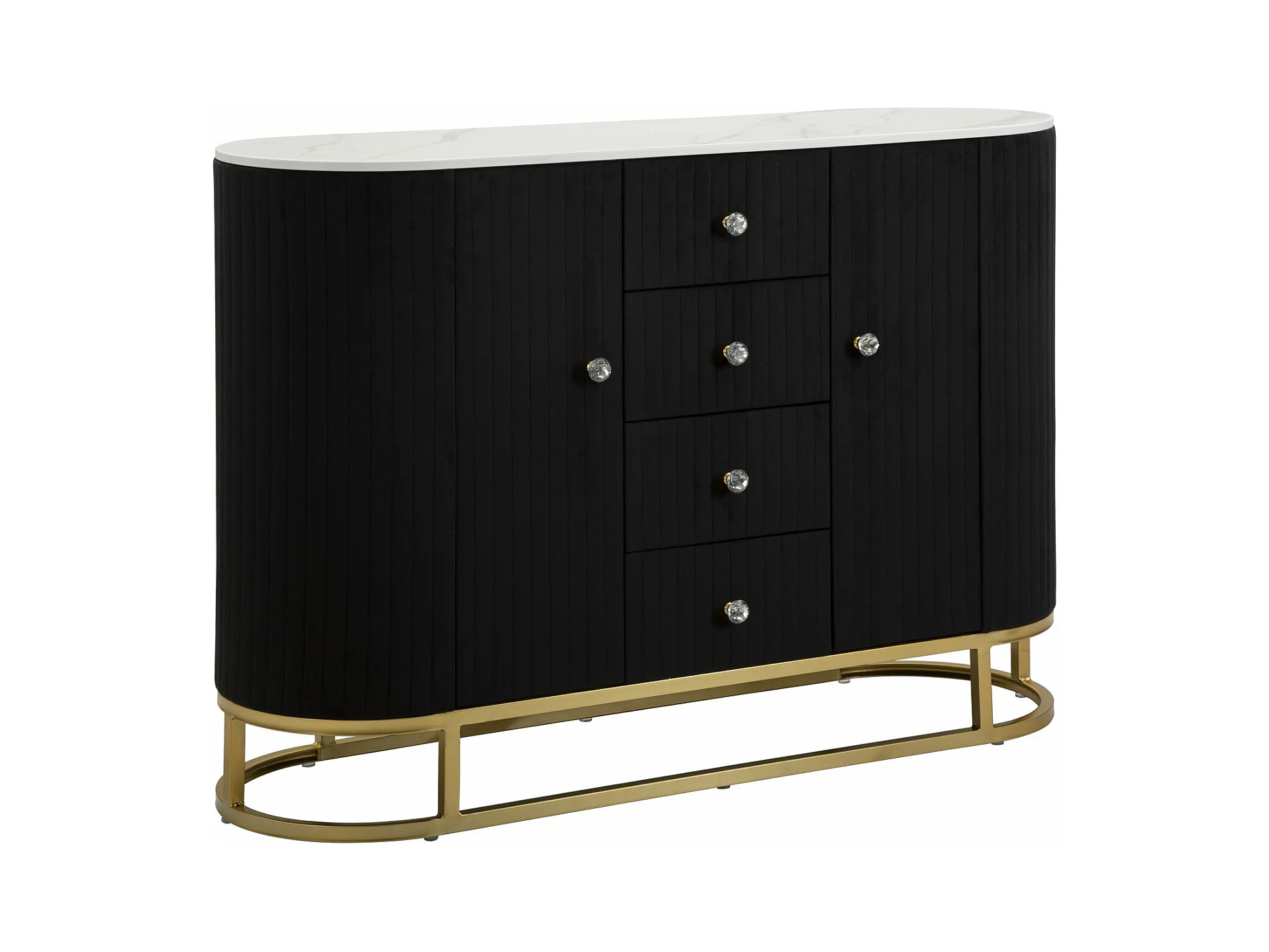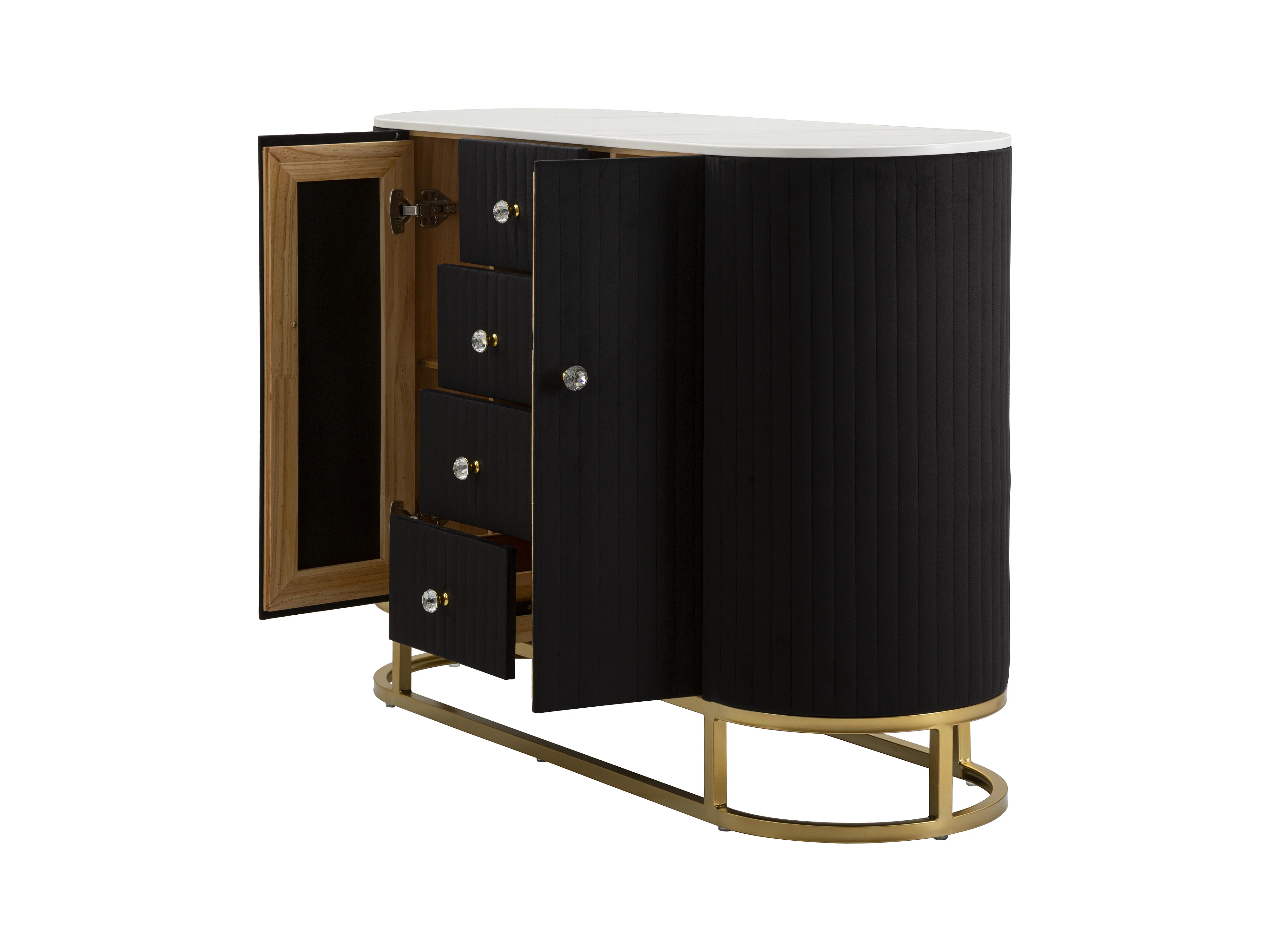 Meuble en tissu métal noir blanc doré bois 120x40x85 cm