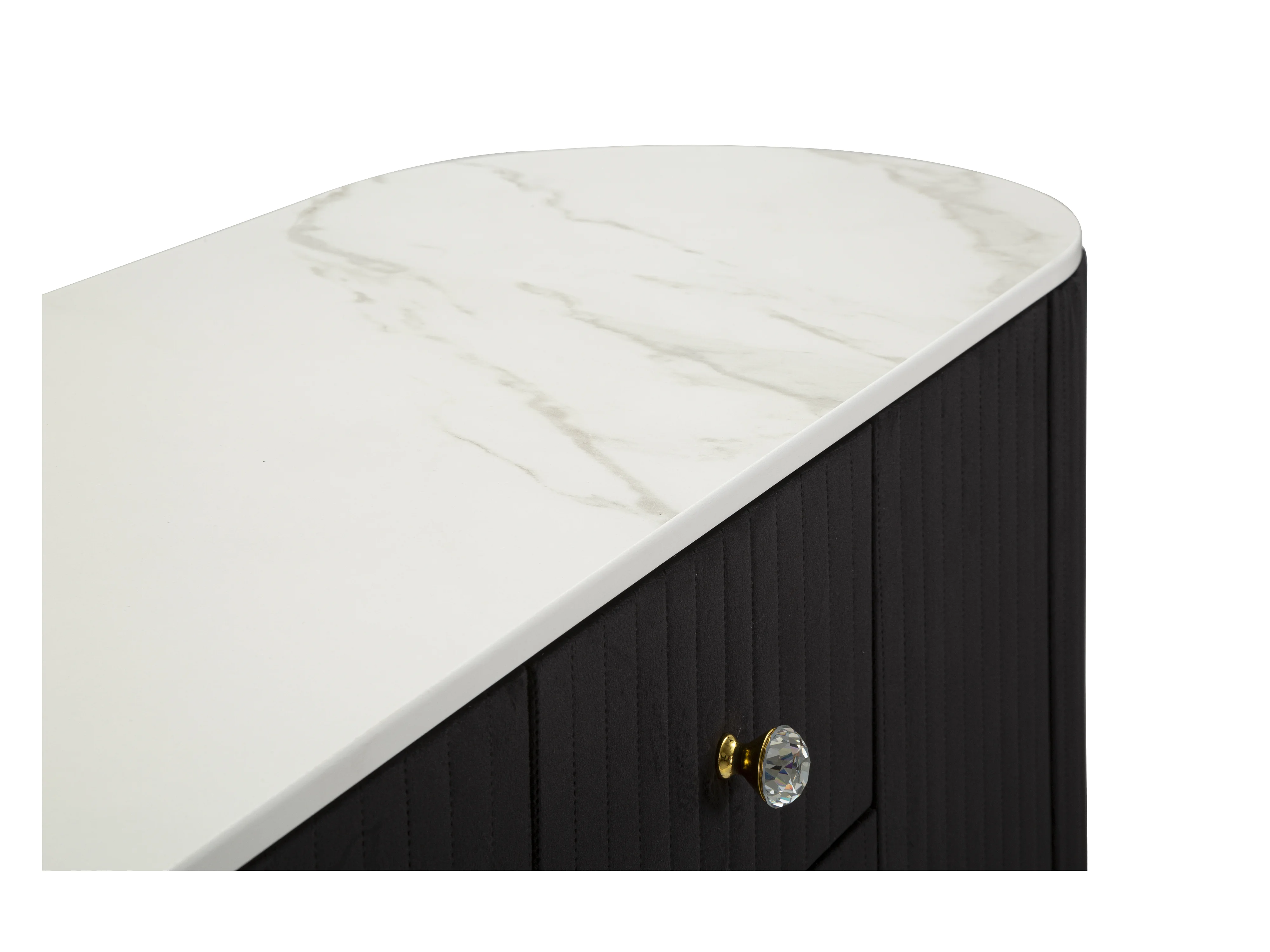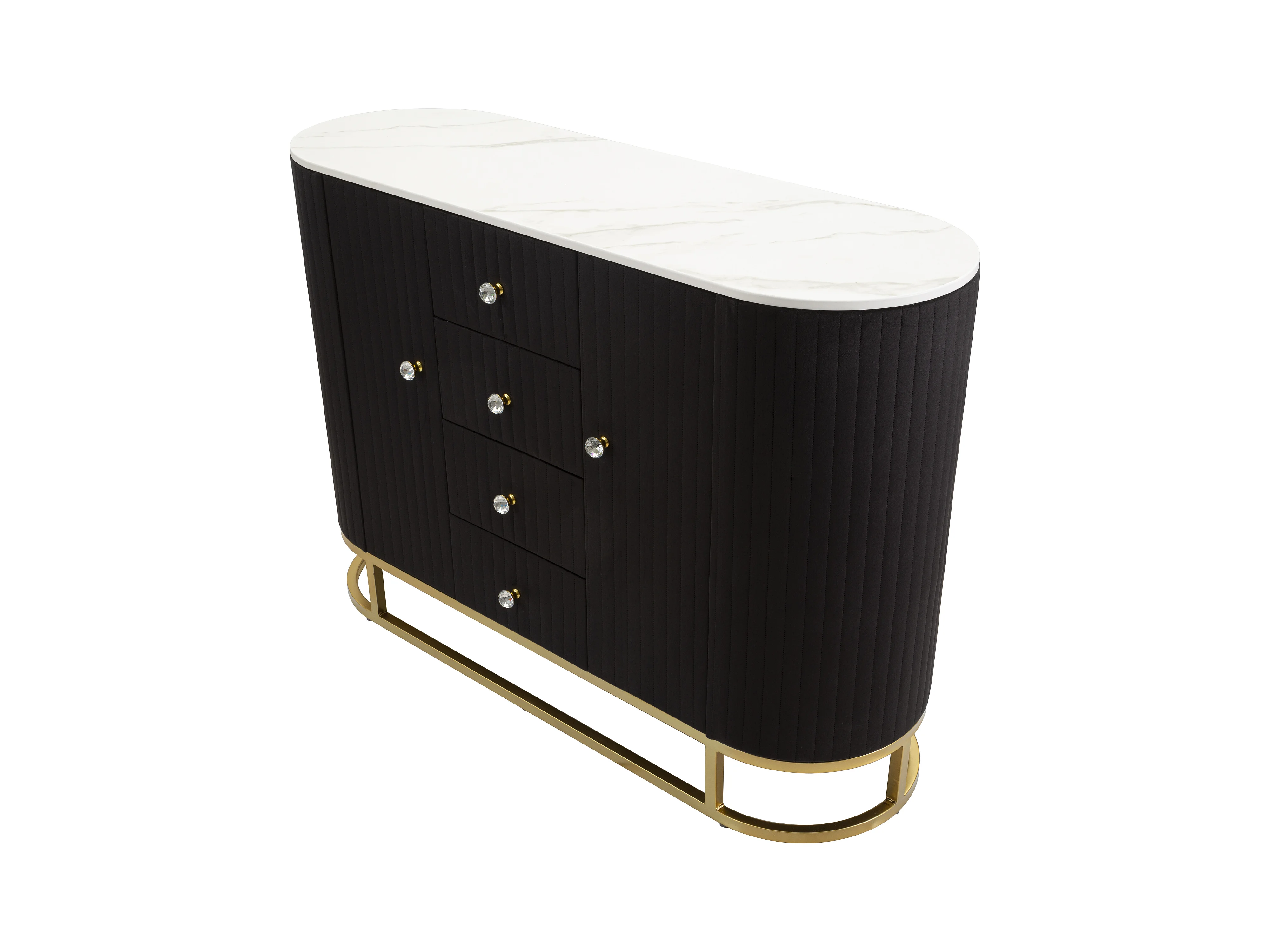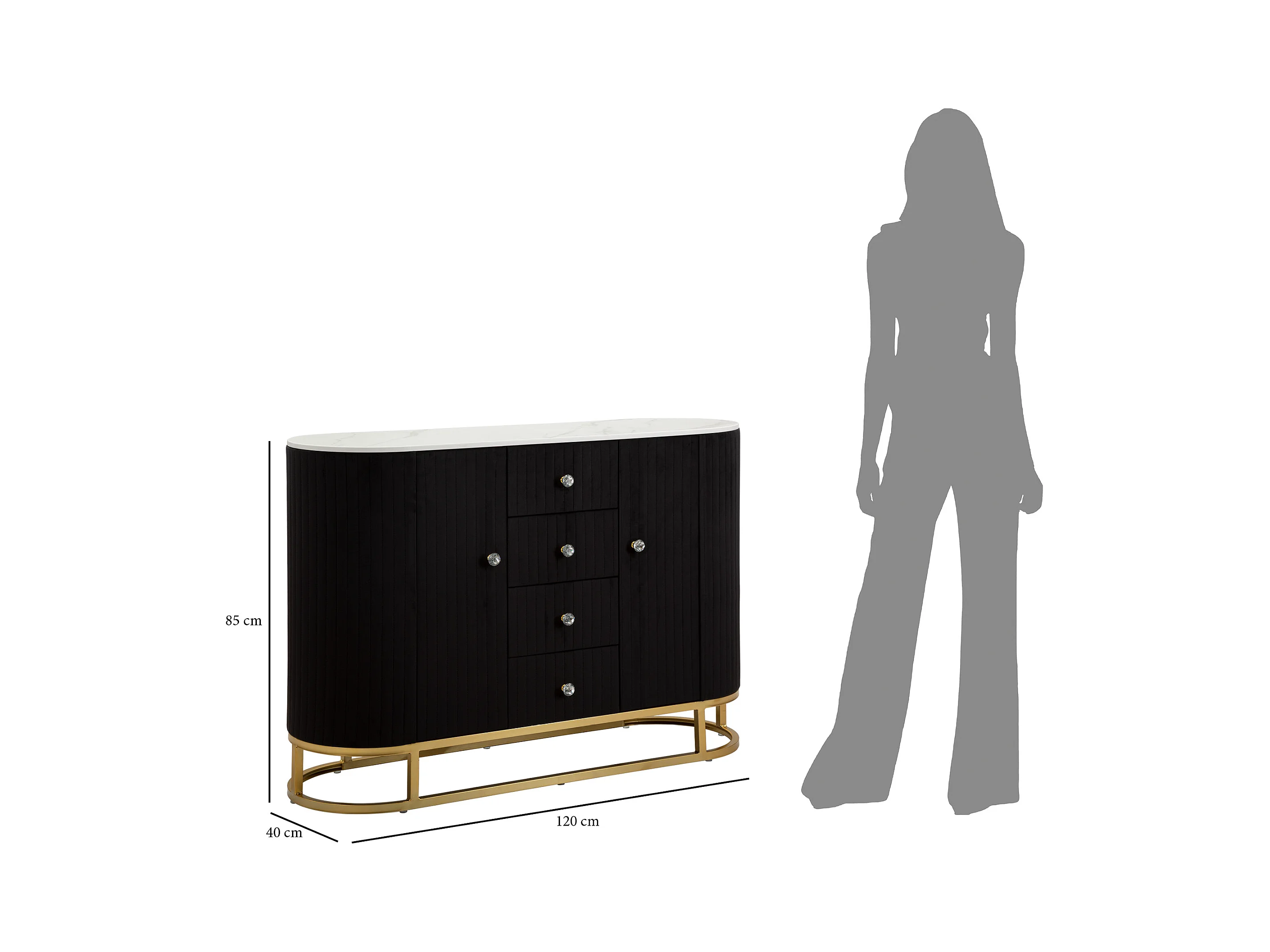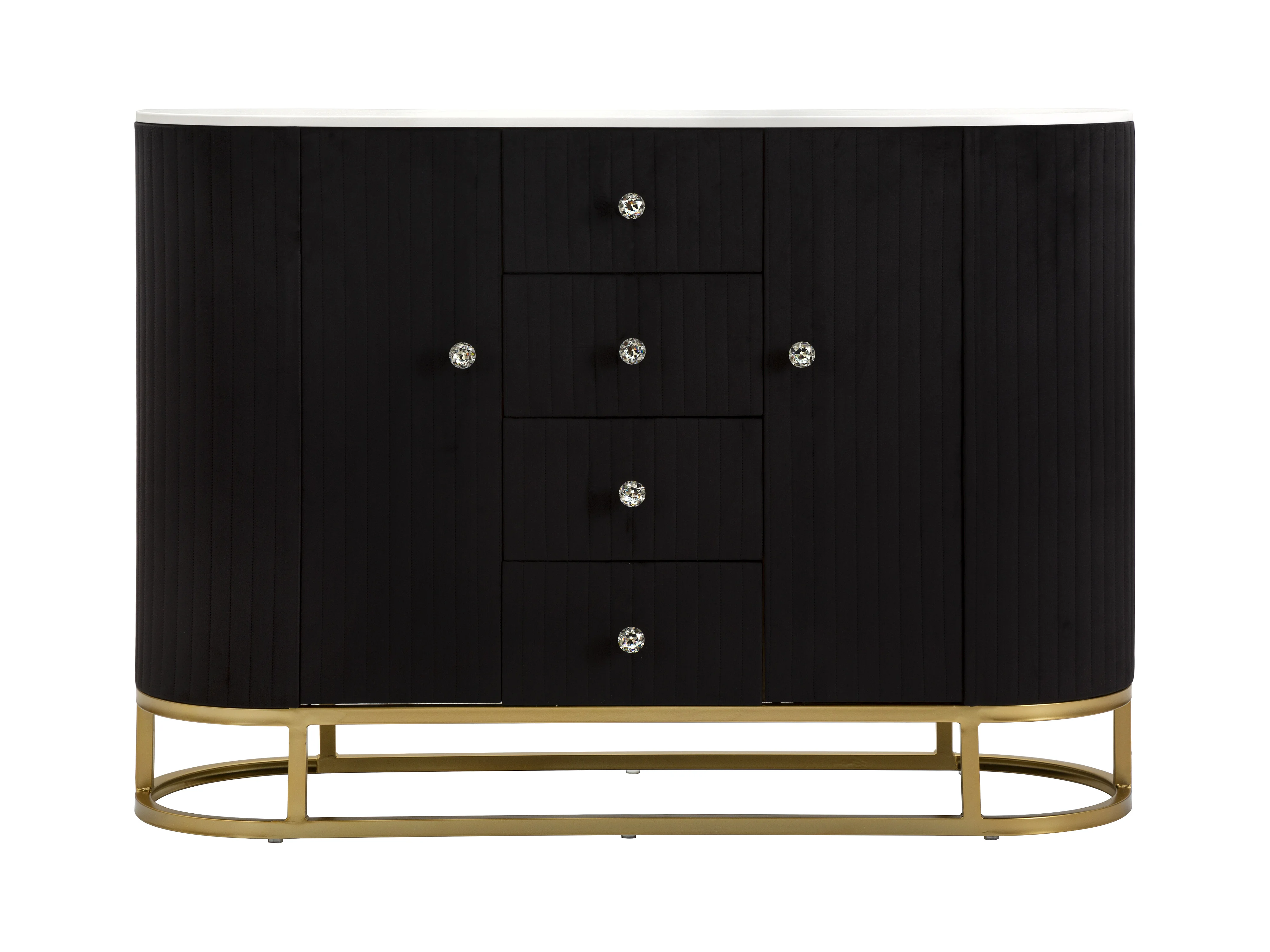 Meuble en tissu métal noir blanc doré bois 120x40x85 cm