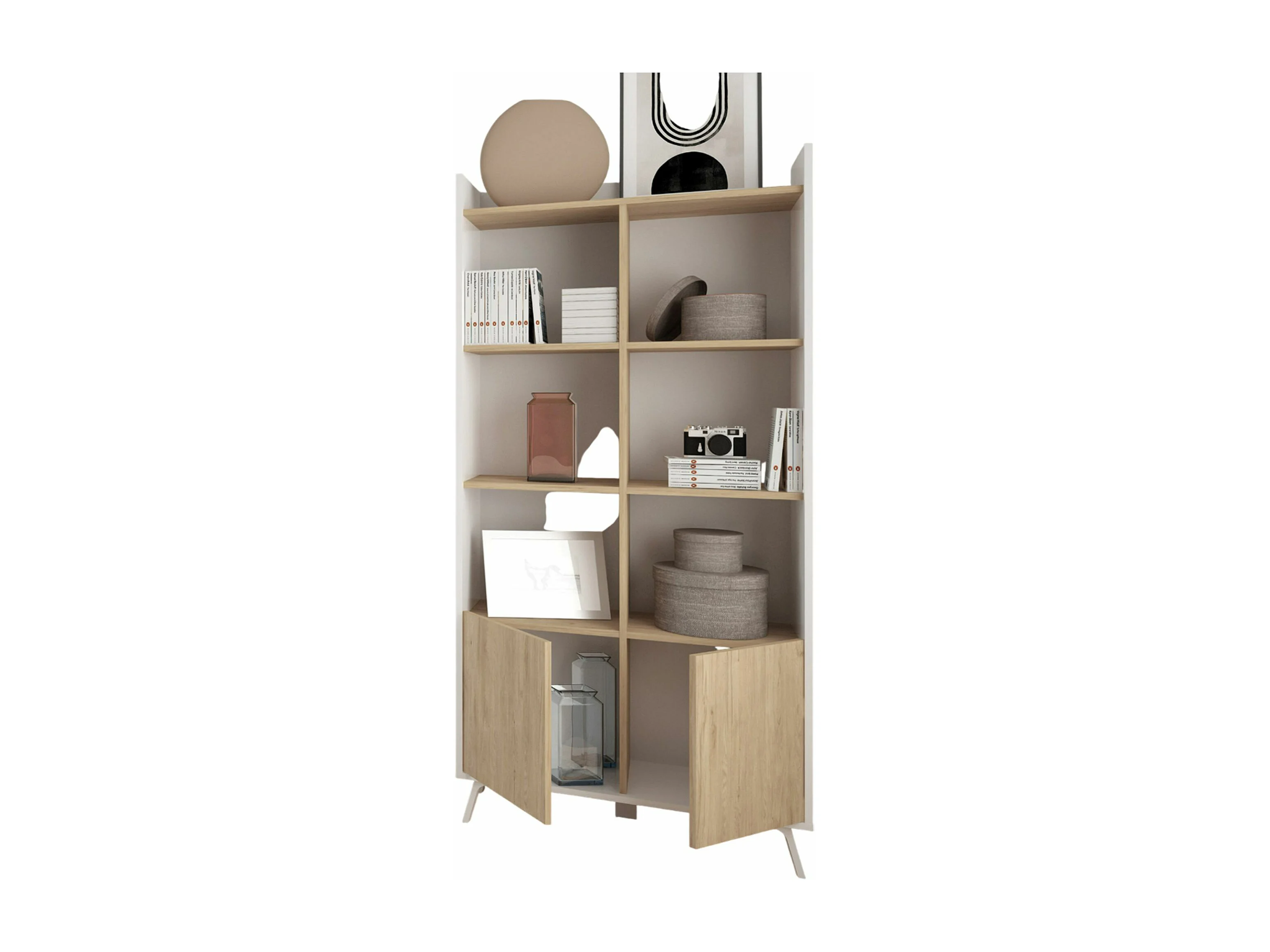 Meuble étagère, bibliothèque murale coloris blanc, chêne - Hauteur 171 x Longueur 80 x profondeur 33 cm