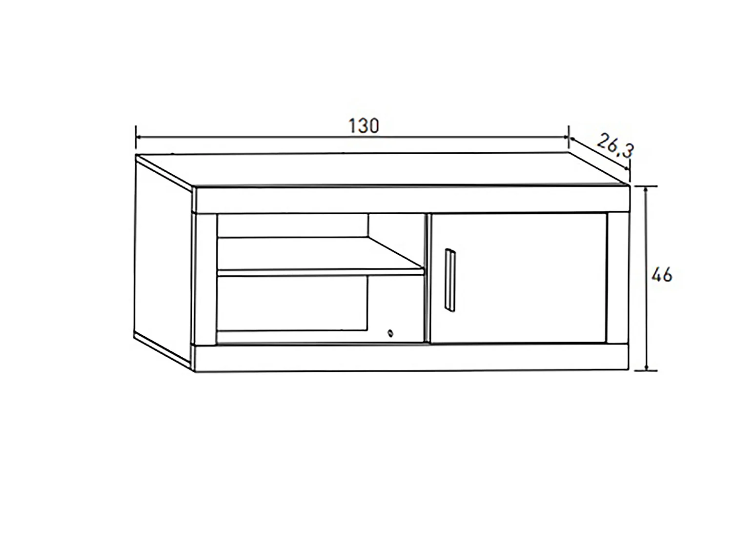 Meuble haut 1 porte coloris chêne cambrian, effet textile - Longueur 130 x profondeur 26,30 x hauteur 46 cm