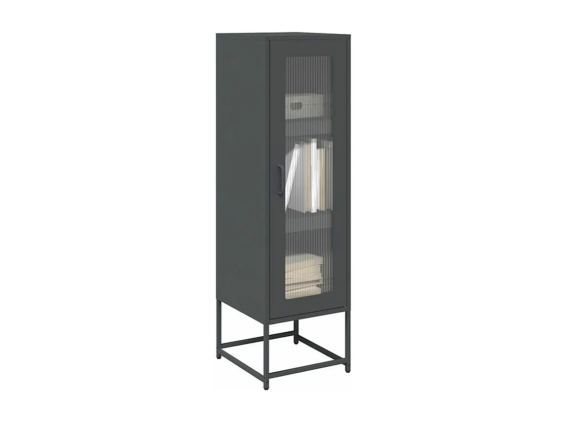 Meuble haut de rangement 1 porte 3 niveaux en métal Geko 36cm - Style Industriel-Couleur Gris anthracite