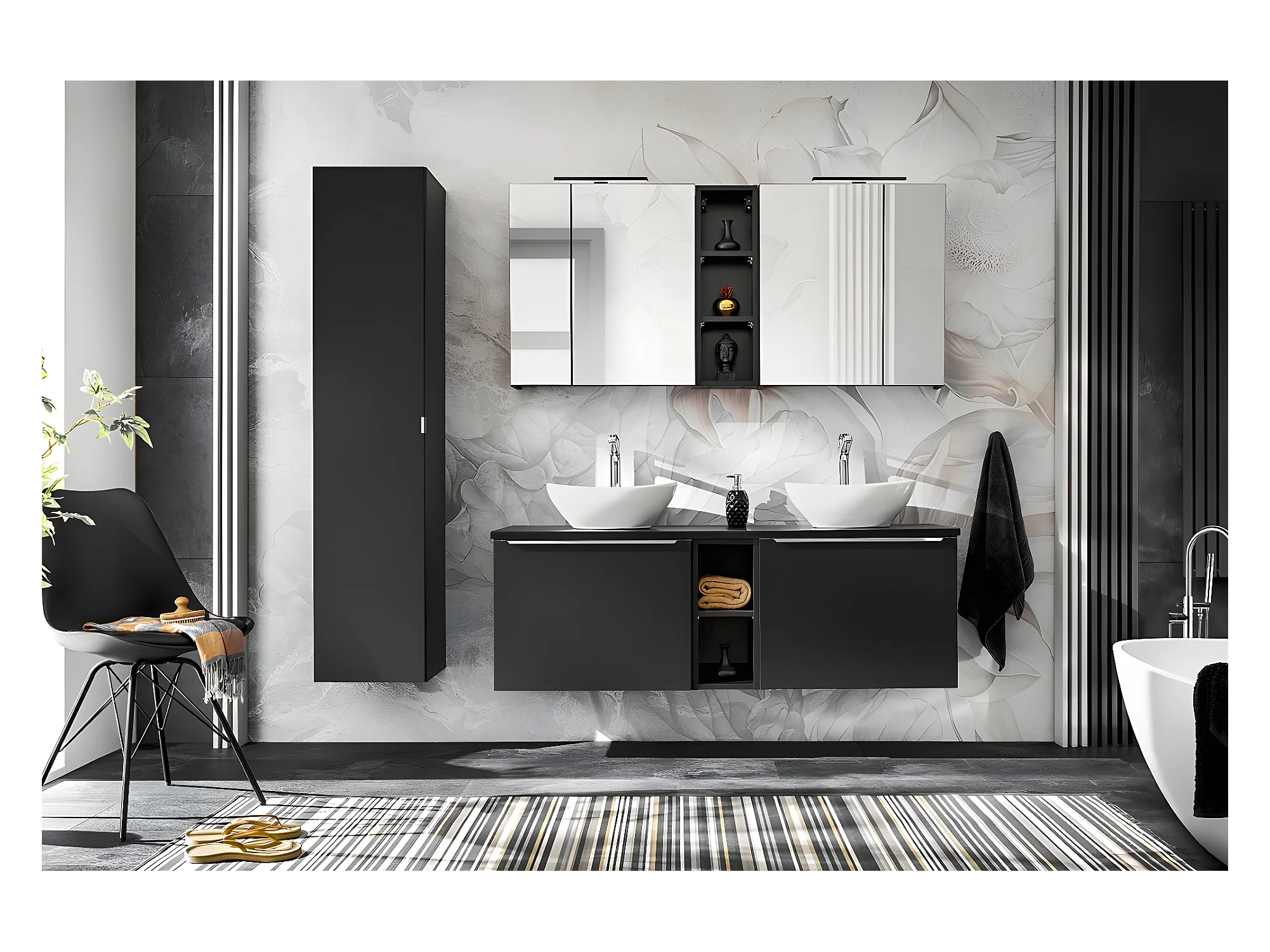 Meuble haut de salle de bain - Noir - L20-H65-P15 - KLAUS