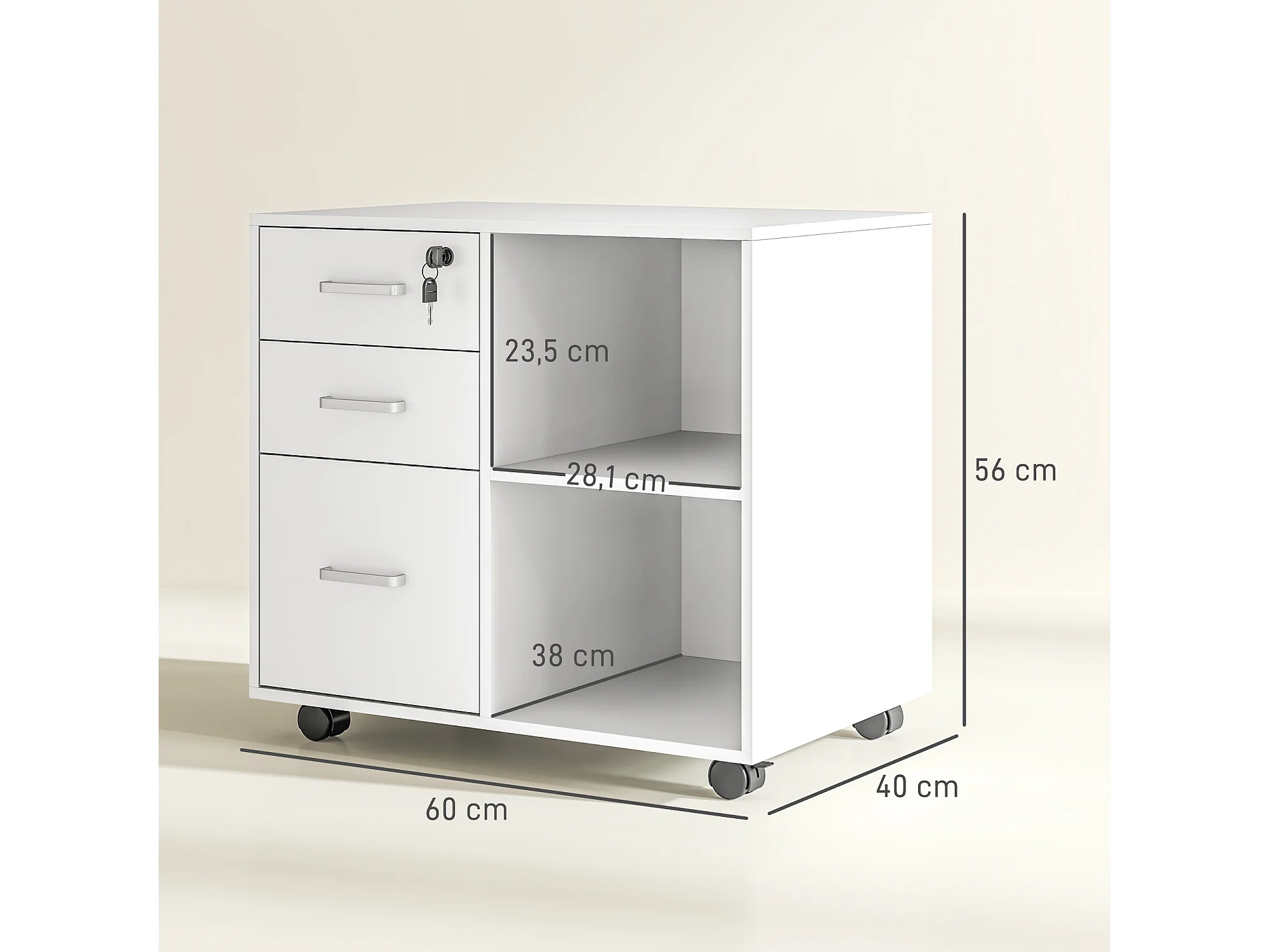 Meuble imprimante mobile - caisson de bureau - tiroir verrouillable + 2 tiroirs, 2 niches - blanc