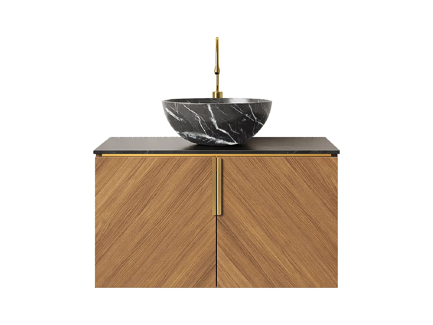 Meuble-lavabo mural salle de bain avec vasque noire en céramique, plan de travail en pierre sinterisée noire (76x50x55.1cm)