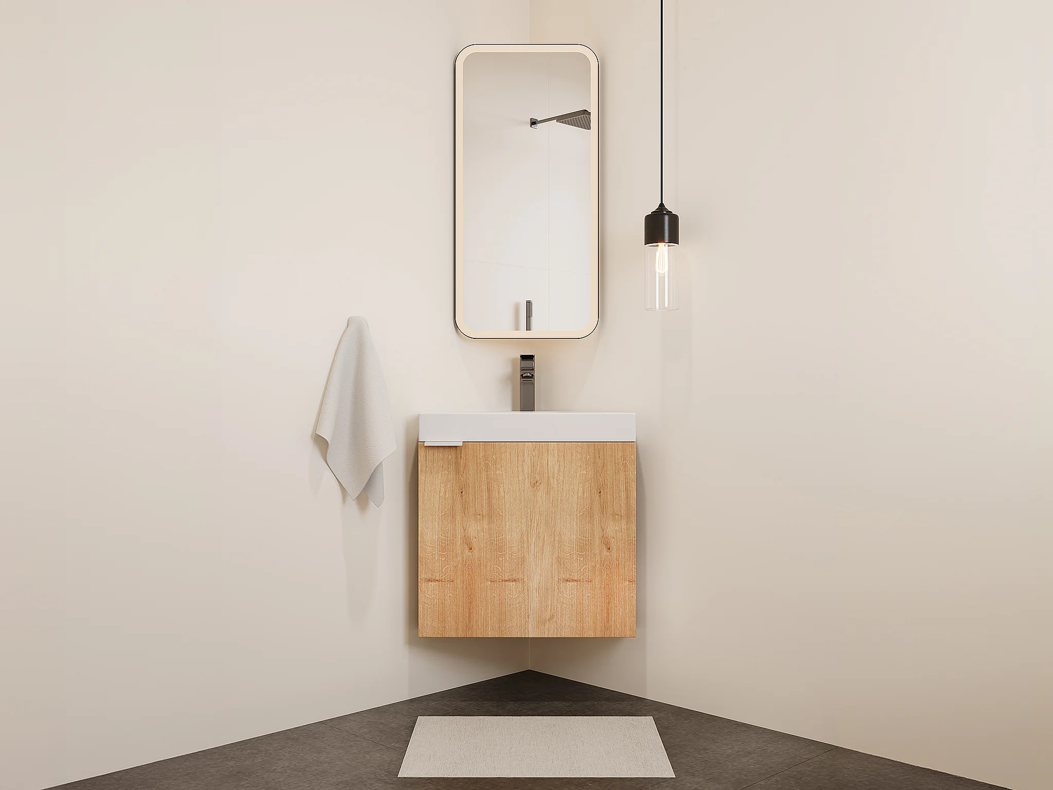 Meuble lave-main d'angle suspendu naturel clair - 56 cm - MANODO
