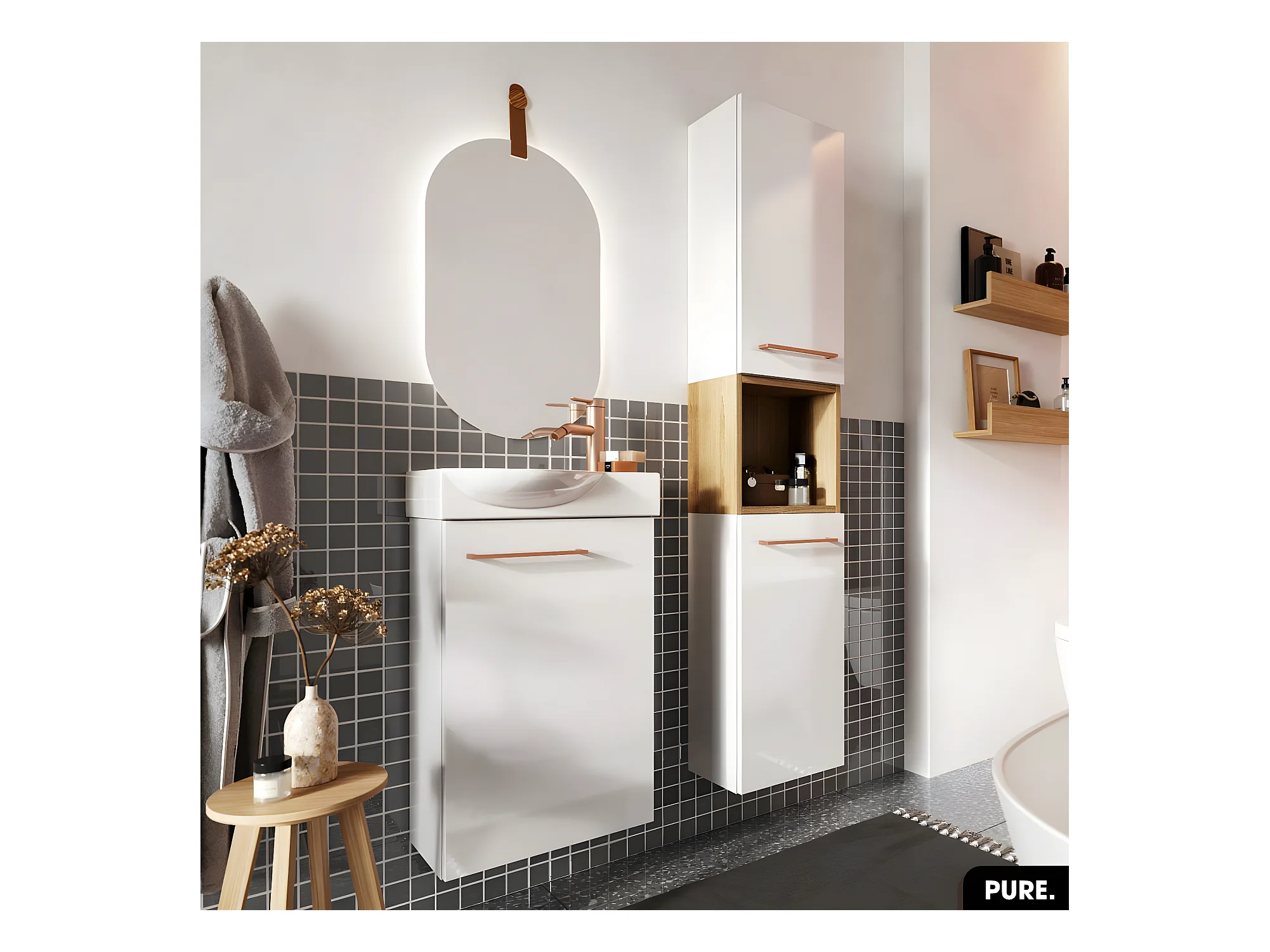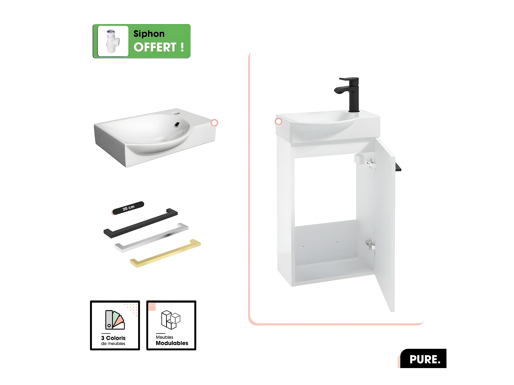 Meuble lave-mains avec vasque - Siphon OFFERT | PURE | Blanc | 39 × 60 × 22