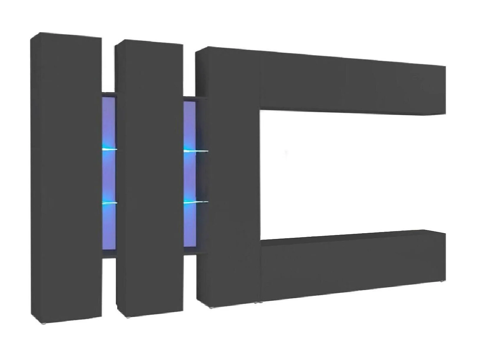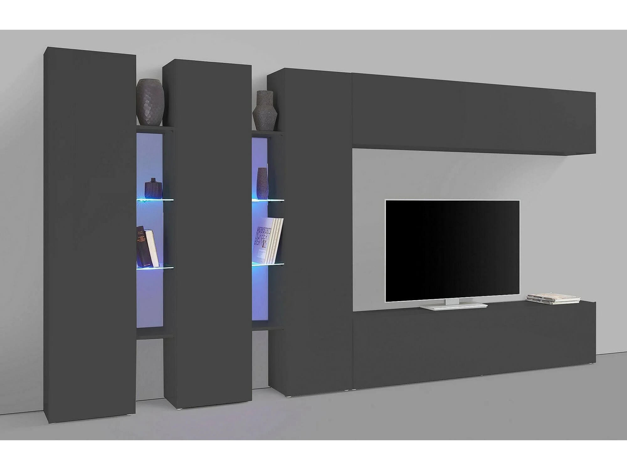 Système mural Carmelo, ensemble de salon meuble TV 5 portes, meuble de salon polyvalent, 100% Made in Italy, 340x30h180 cm, Anthracite