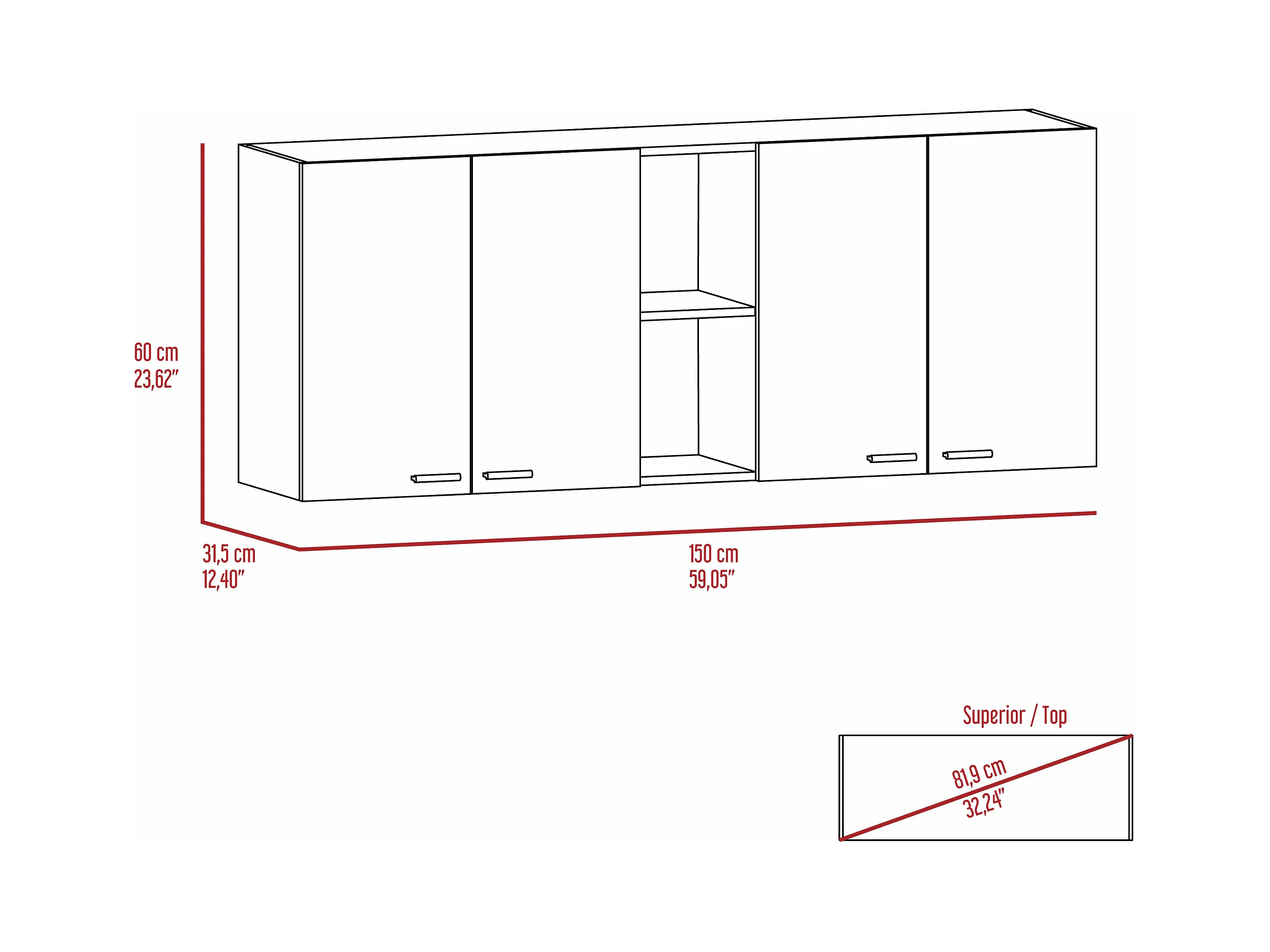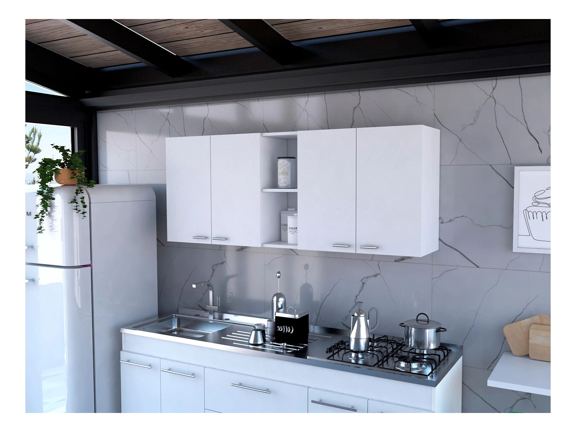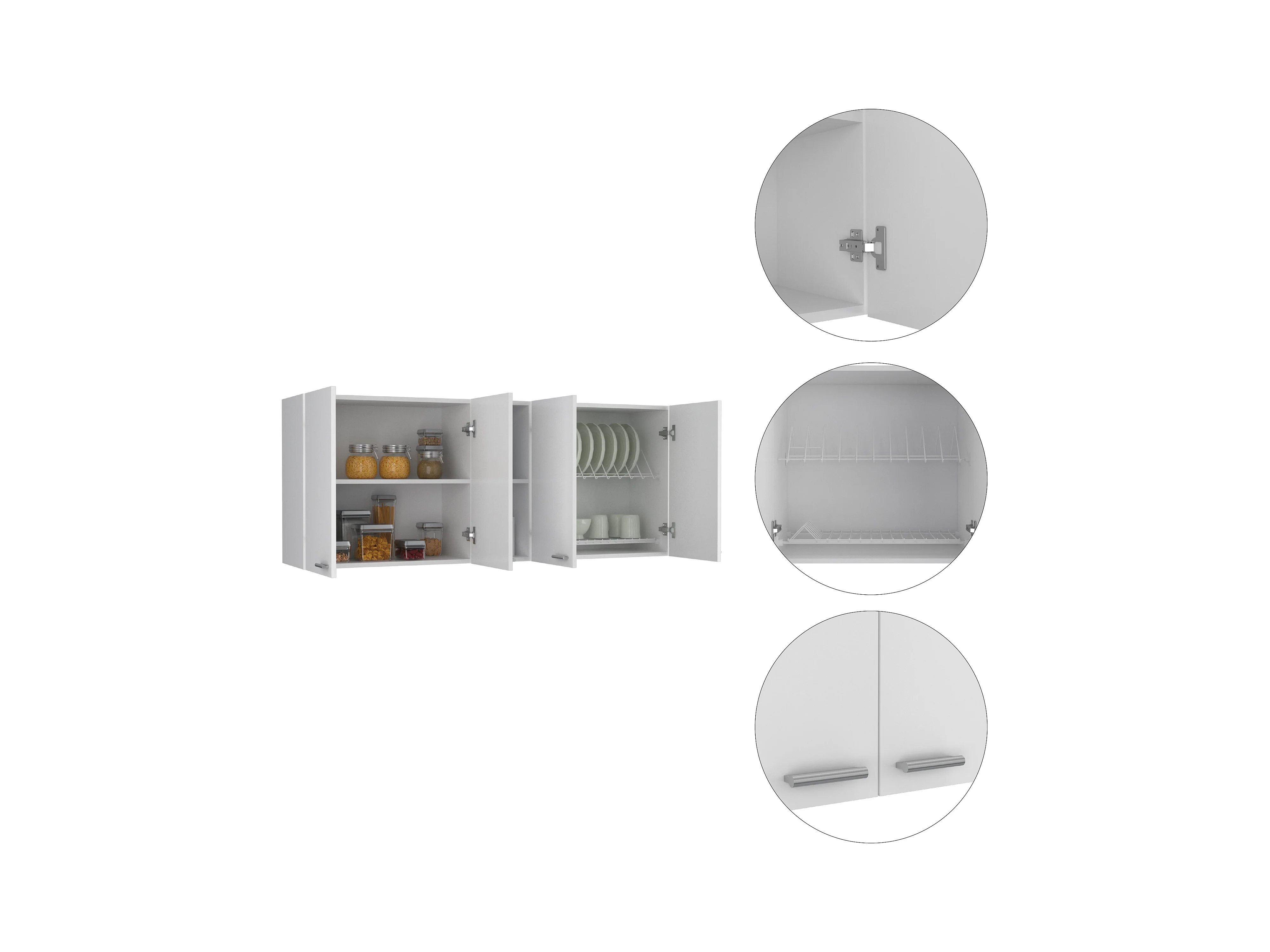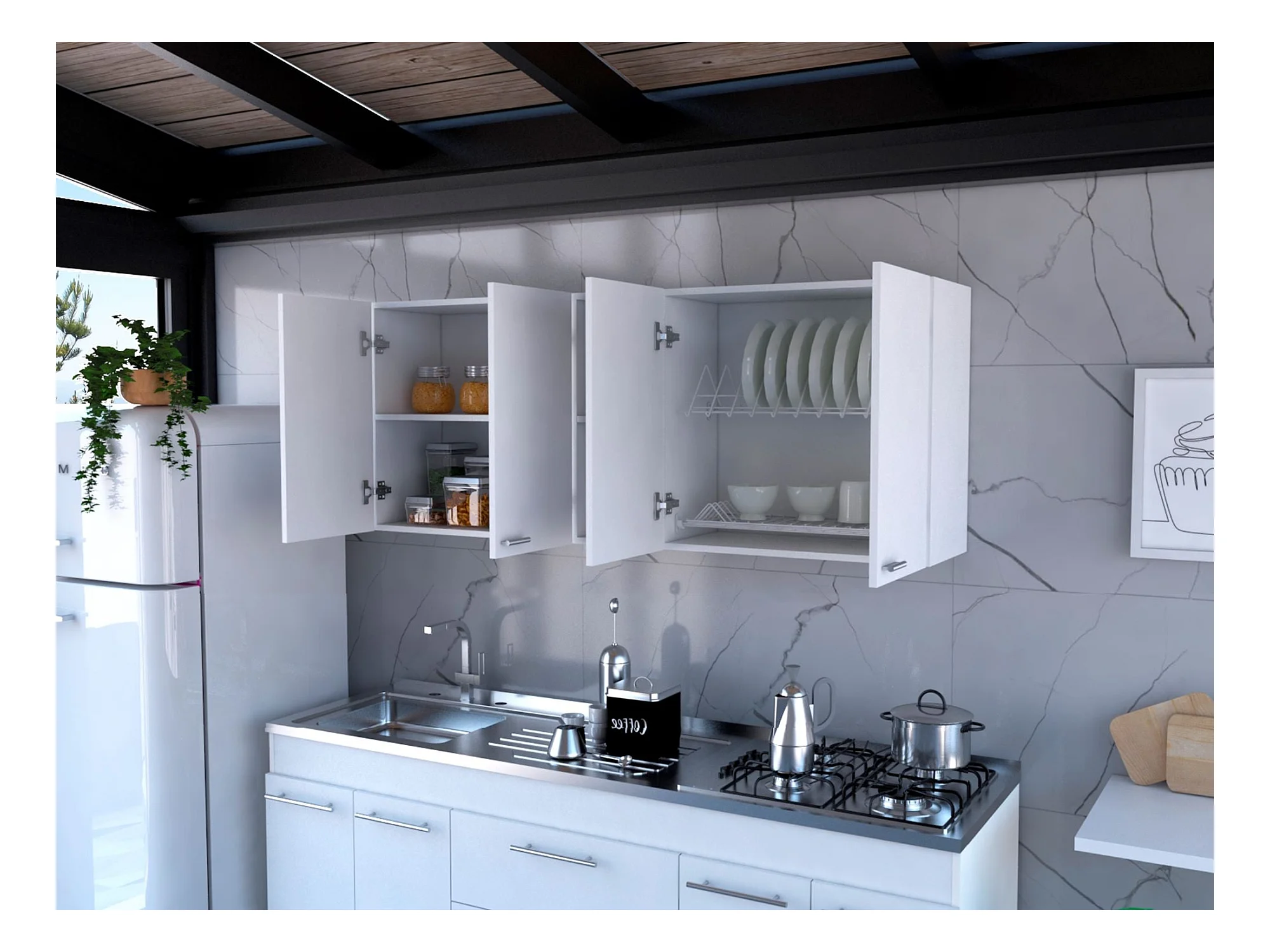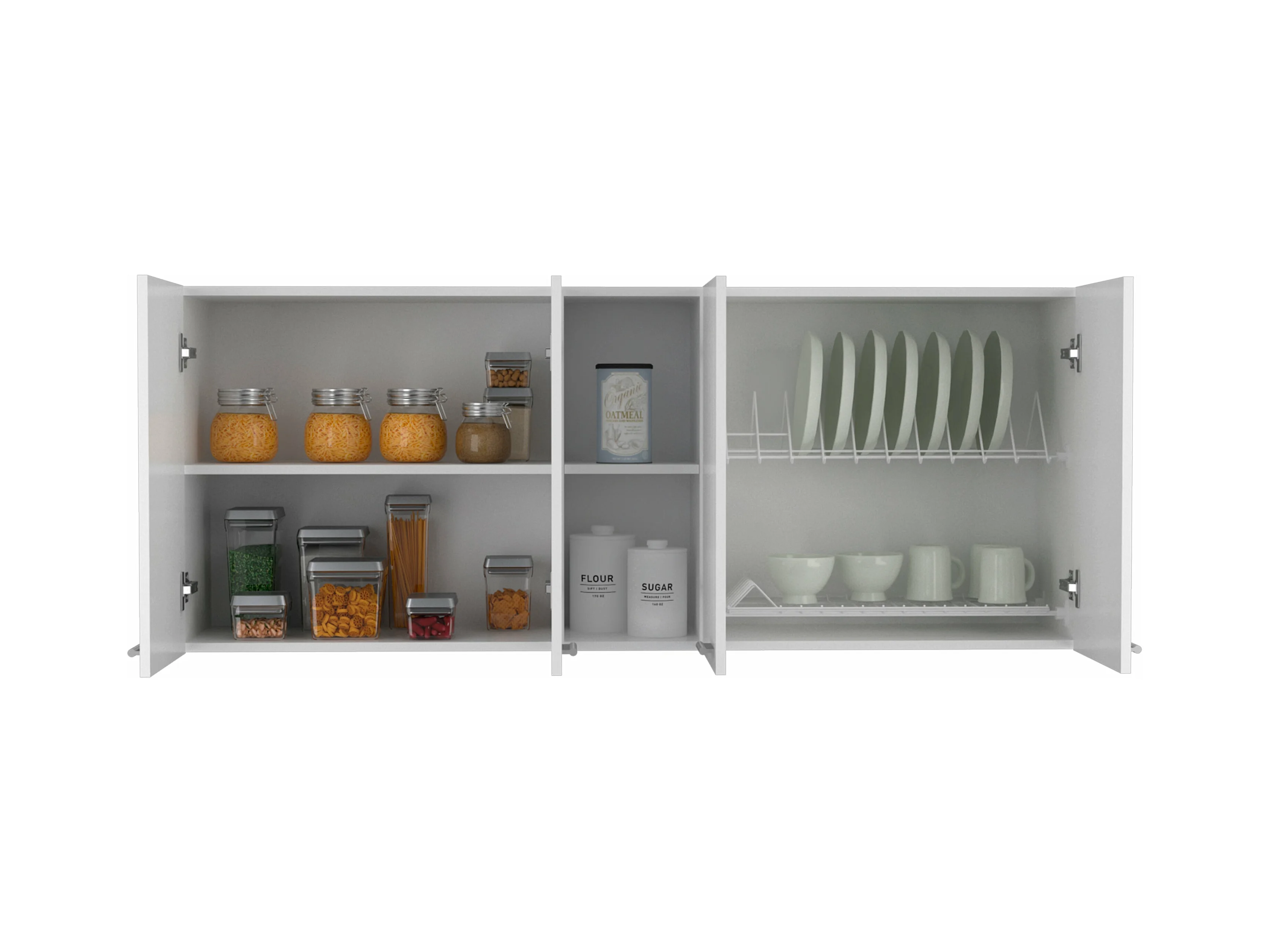 Meuble de cuisine Portofino 150, grand et pratique, avec portes et casiers à assiettes , 59.99 cm X 149.98 cm X 31.49 cm , Blanc