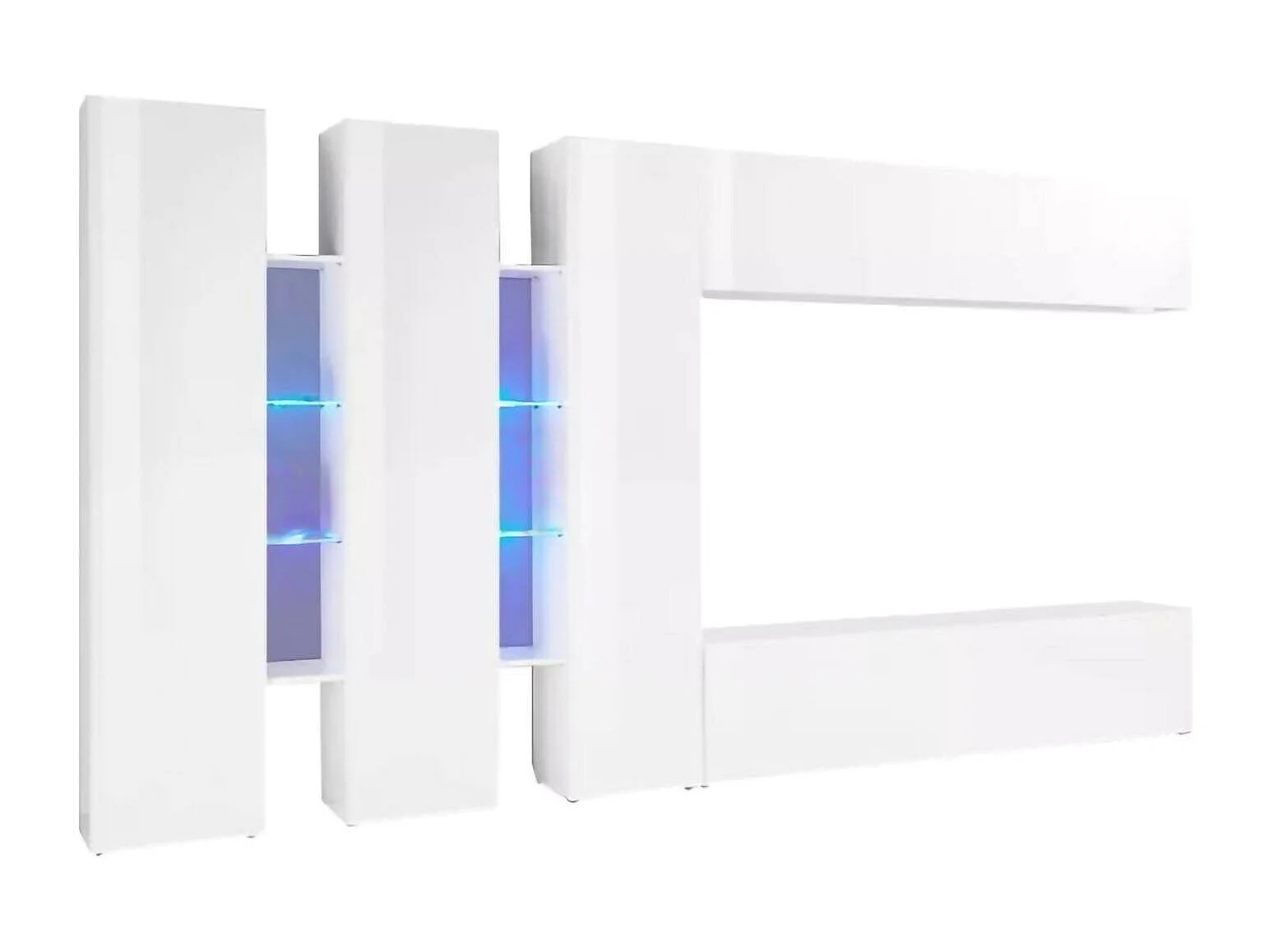 Élément mural Dattard, ensemble de salon meuble TV 5 portes, meuble de salon polyvalent, 100% Made in Italy, 340x30h180 cm, Blanc brillant