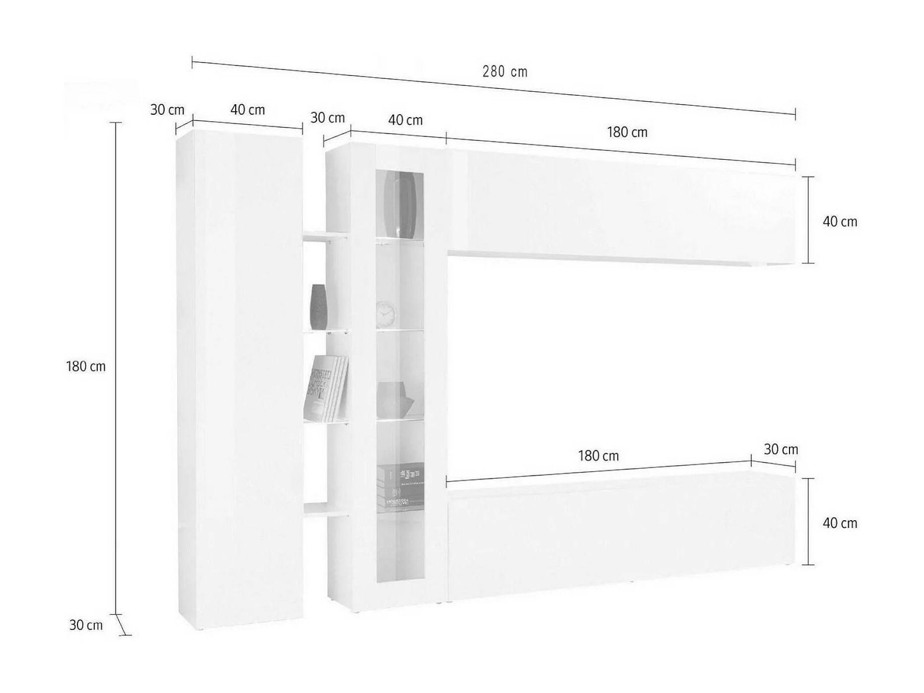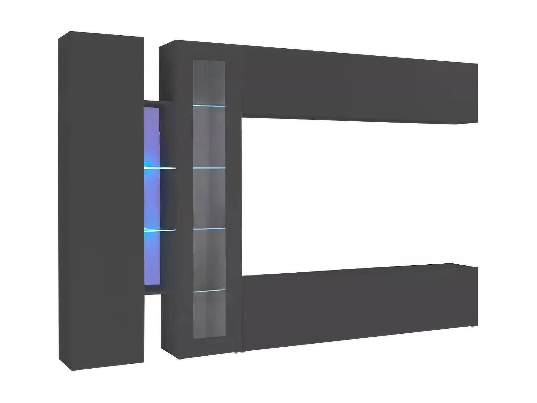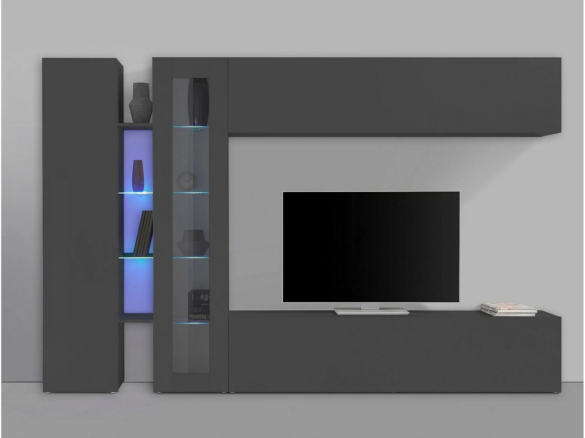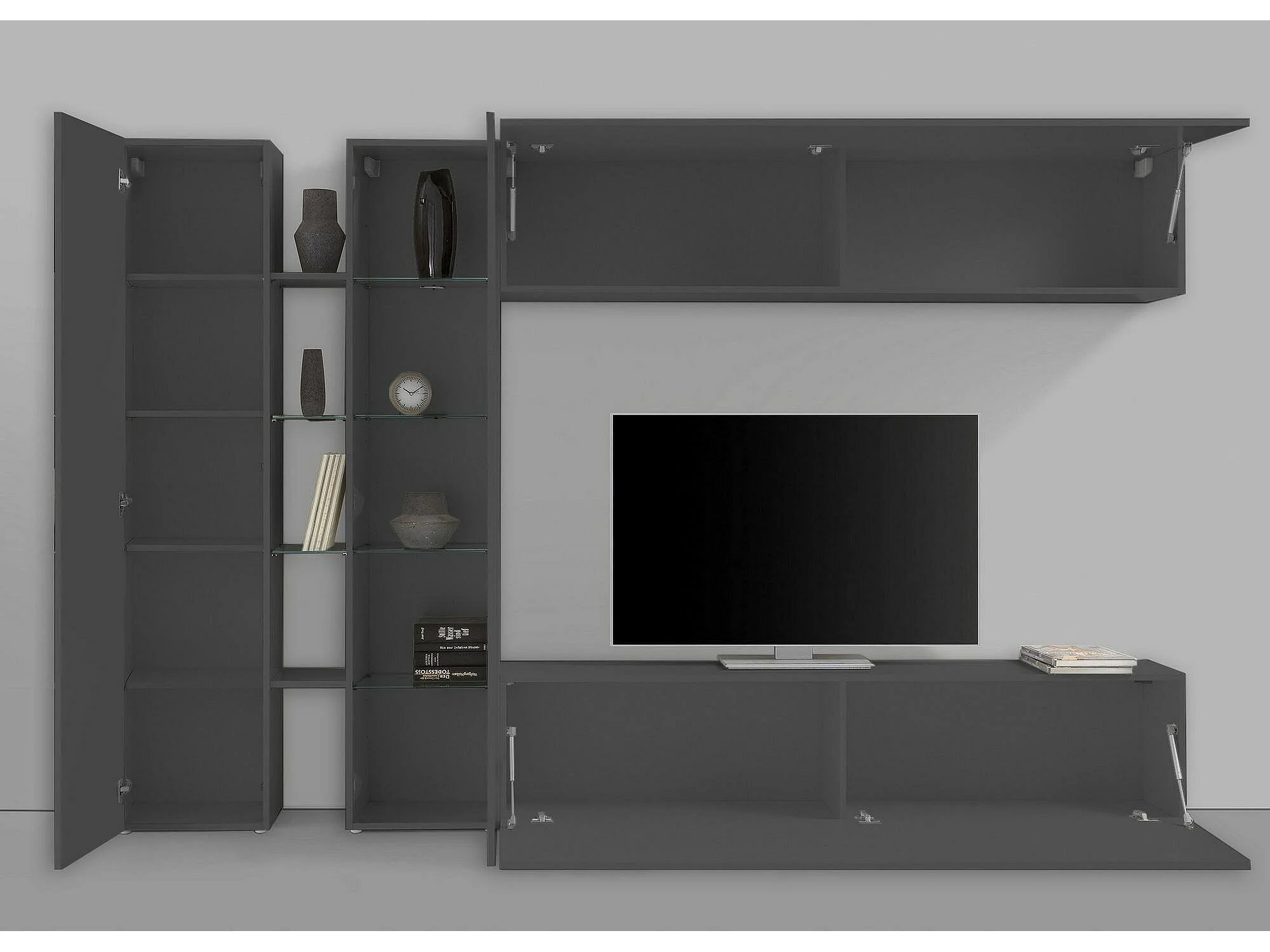 Système mural Dborin, meuble TV 4 portes, meuble de salon polyvalent, 100% Made in Italy, 280x30x180 cm, Anthracite