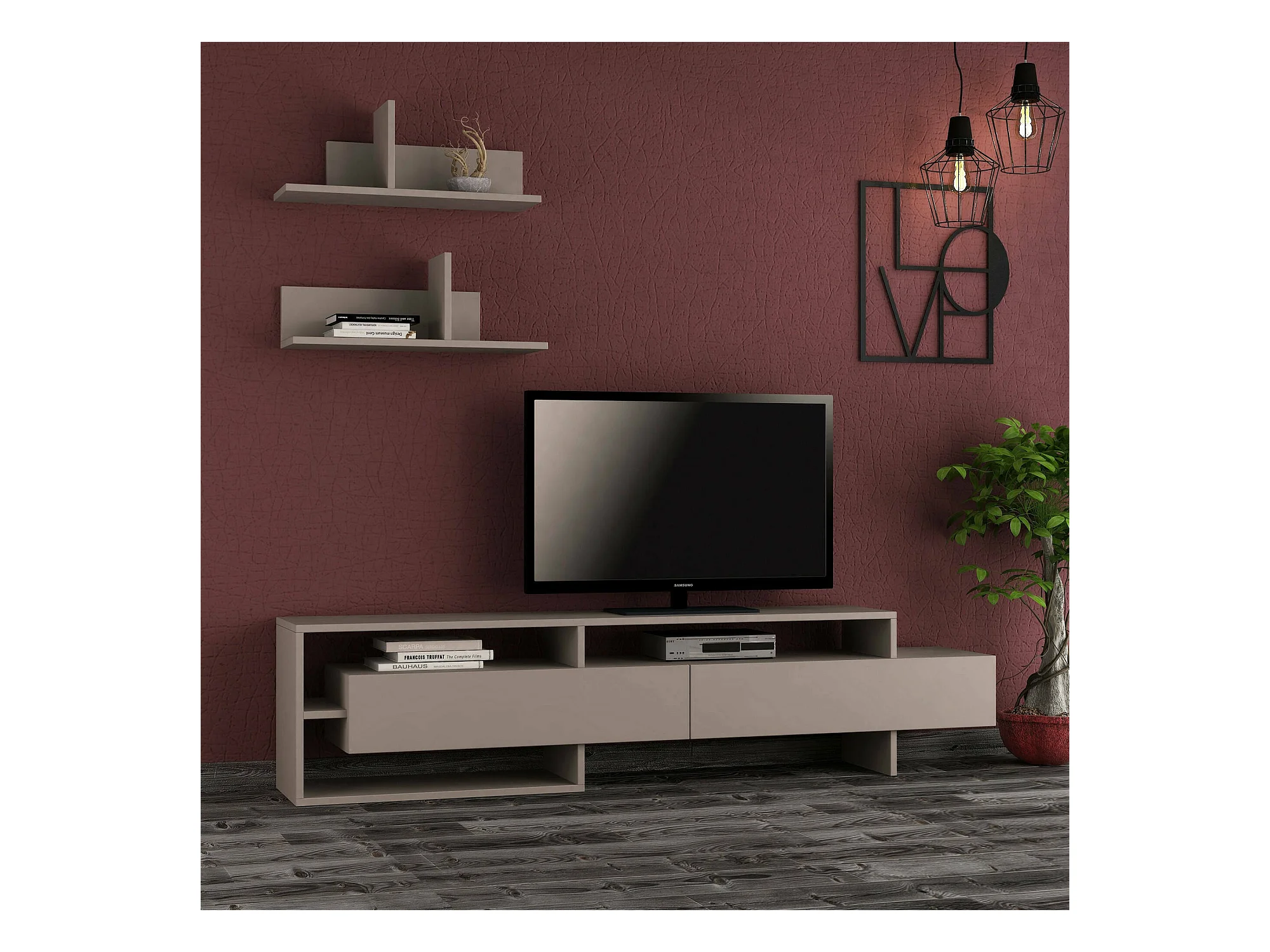 Meuble Mural Dodriozol, Composition du salon, Meubles de salon polyvalents, Meuble télé, 180x32 h42 cm, Beige