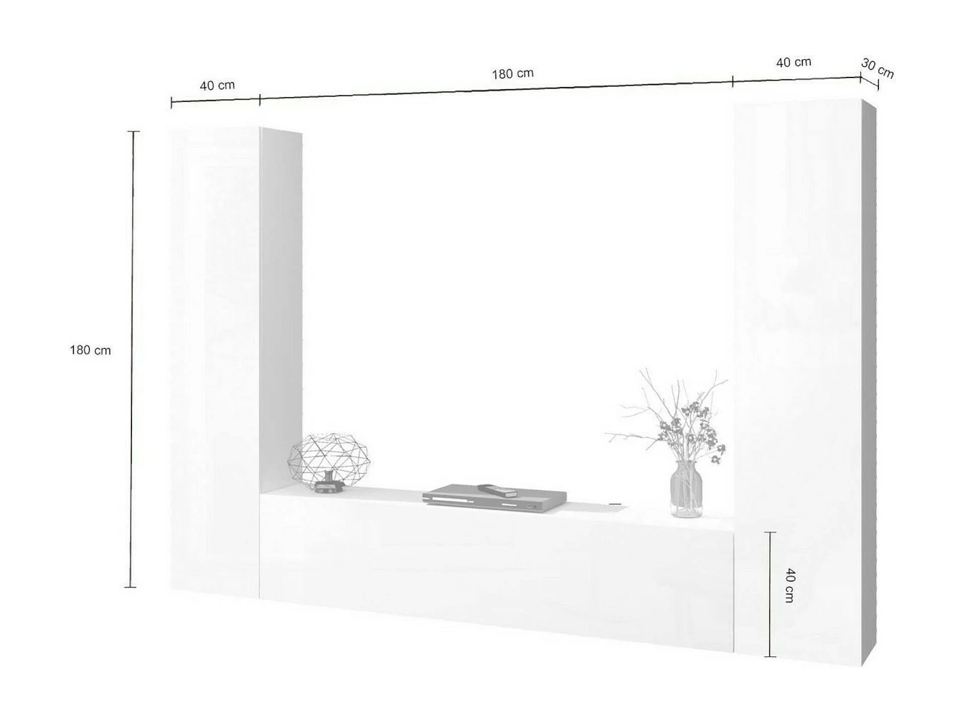 Système mural Giordano, meuble TV 3 portes, meuble de salon polyvalent, 100% Made in Italy, 260x30h180 cm, Blanc brillant
