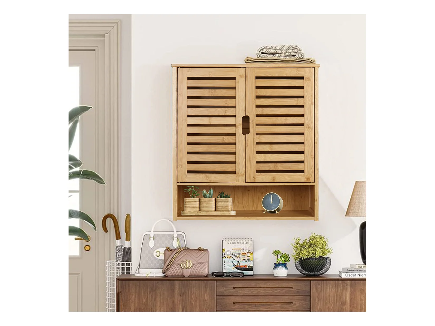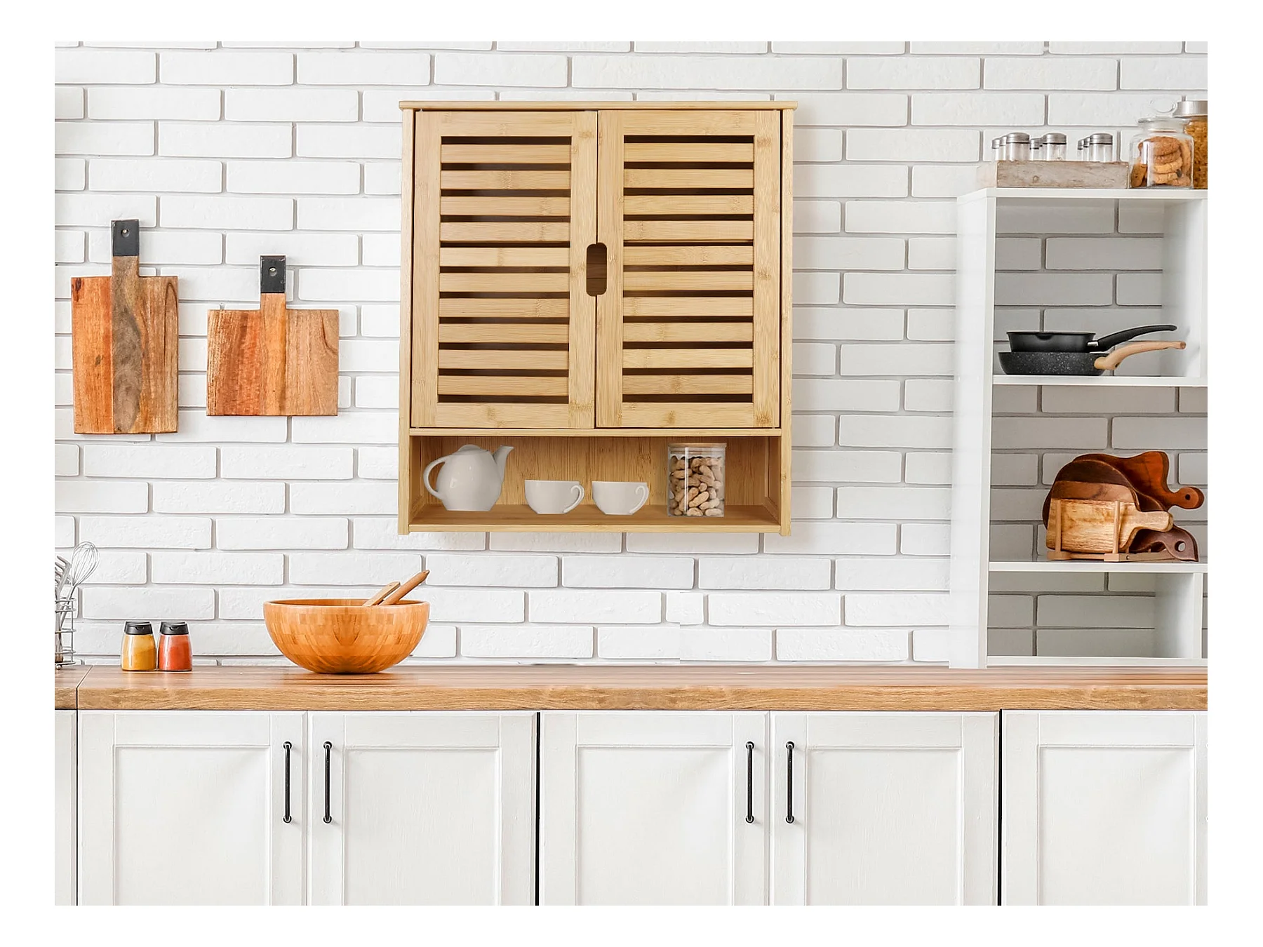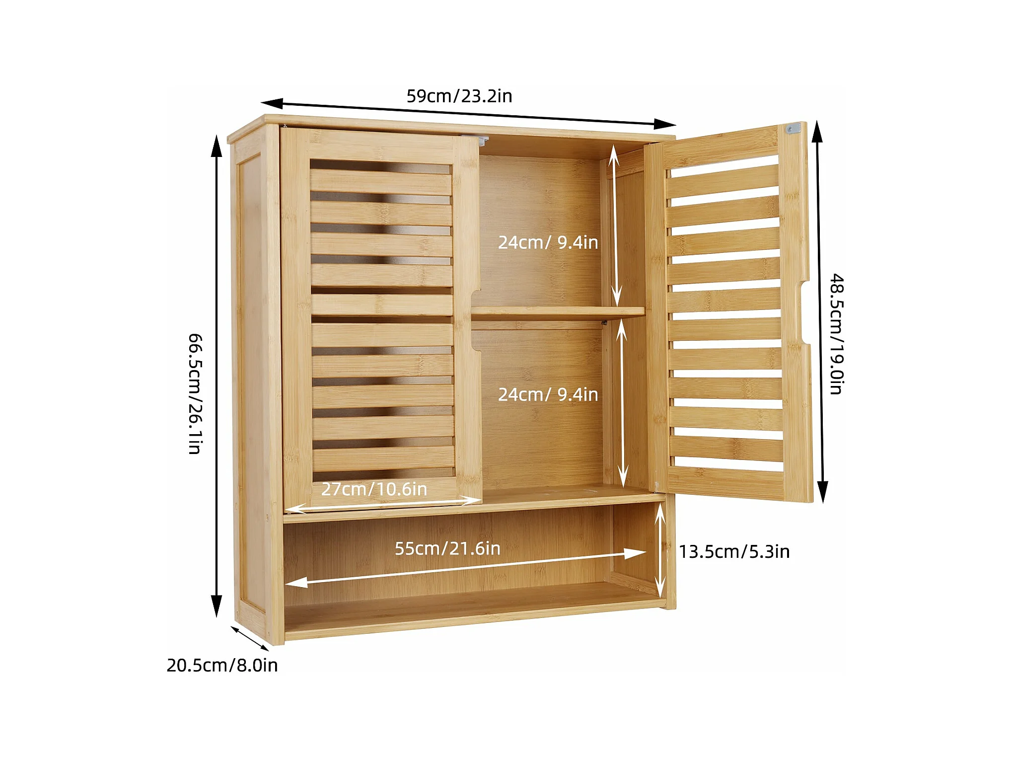 Meuble mural salle de bain armoire toilette suspendu placard wc 2 portes rangement cuisine murale avec étagères réglables 59x20.5x66.5cm