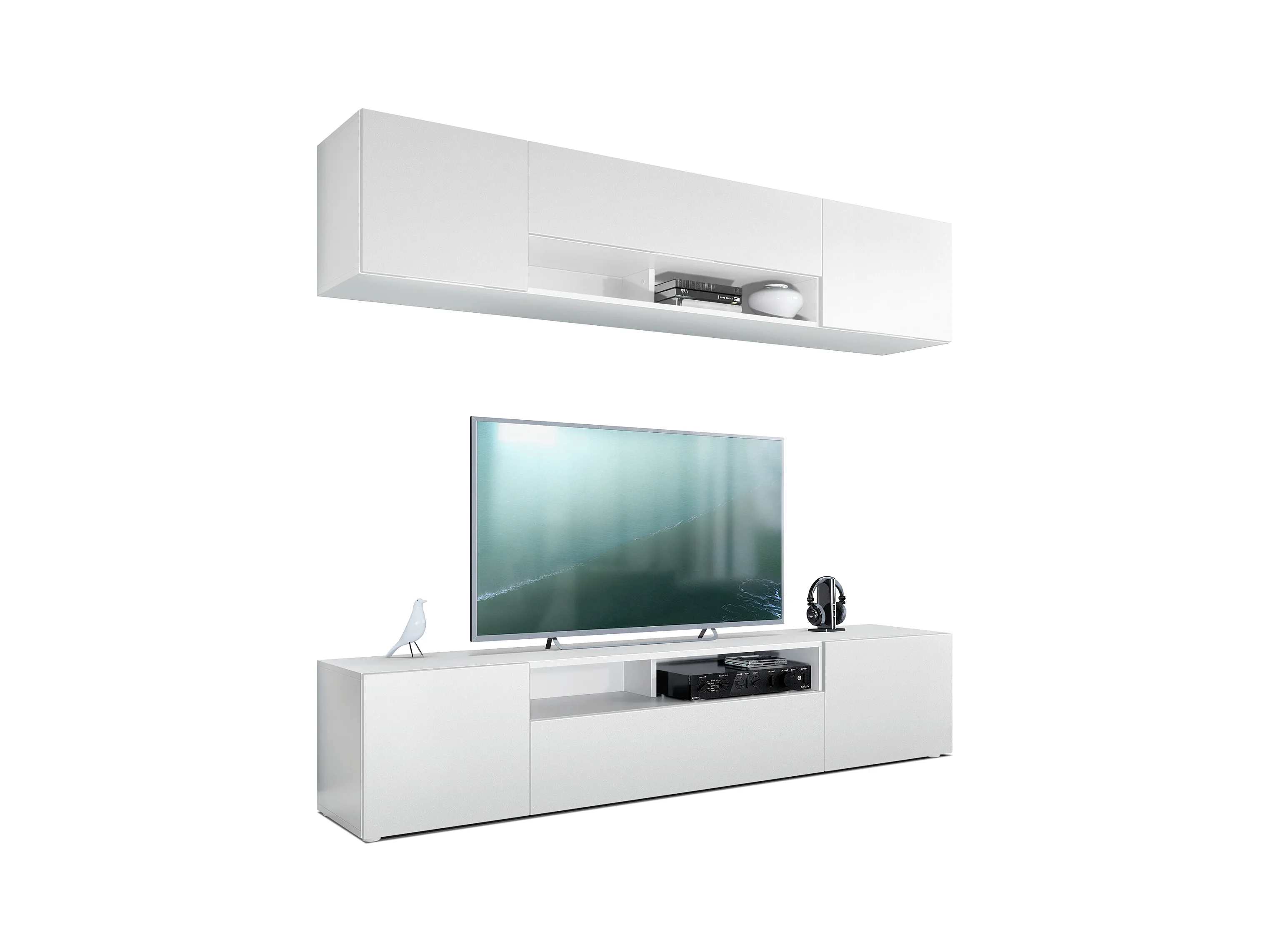 Meuble-paroi Mogan, blanc mat/blanc mat - Meuble mural moderne composé de 2 étagères TV (181 x 147 x 35 cm)
