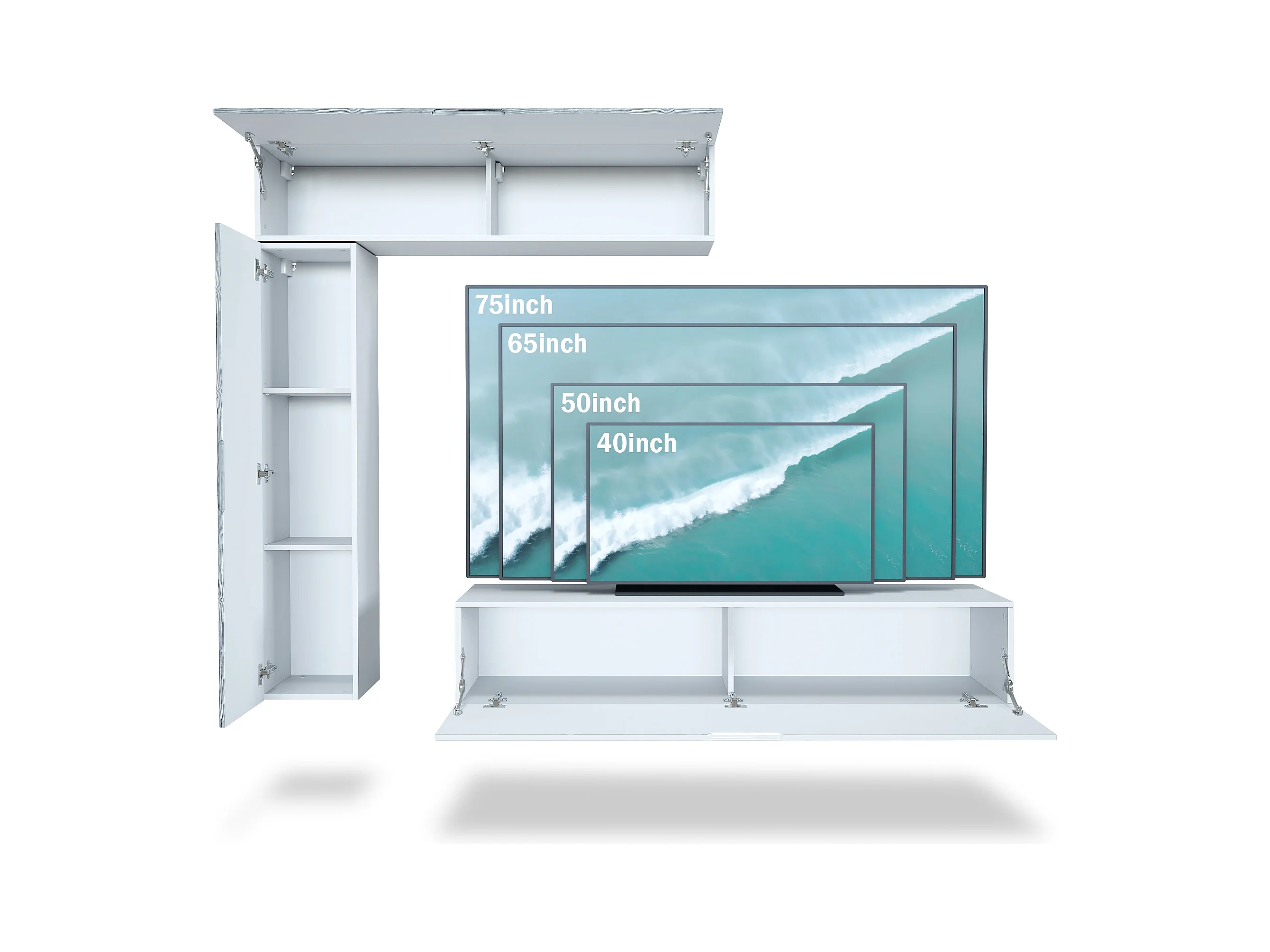 Meuble-paroi Taurito, blanc mat/noir mat - Meuble-paroi moderne pour votre salon (320 x 182 x 39 cm)