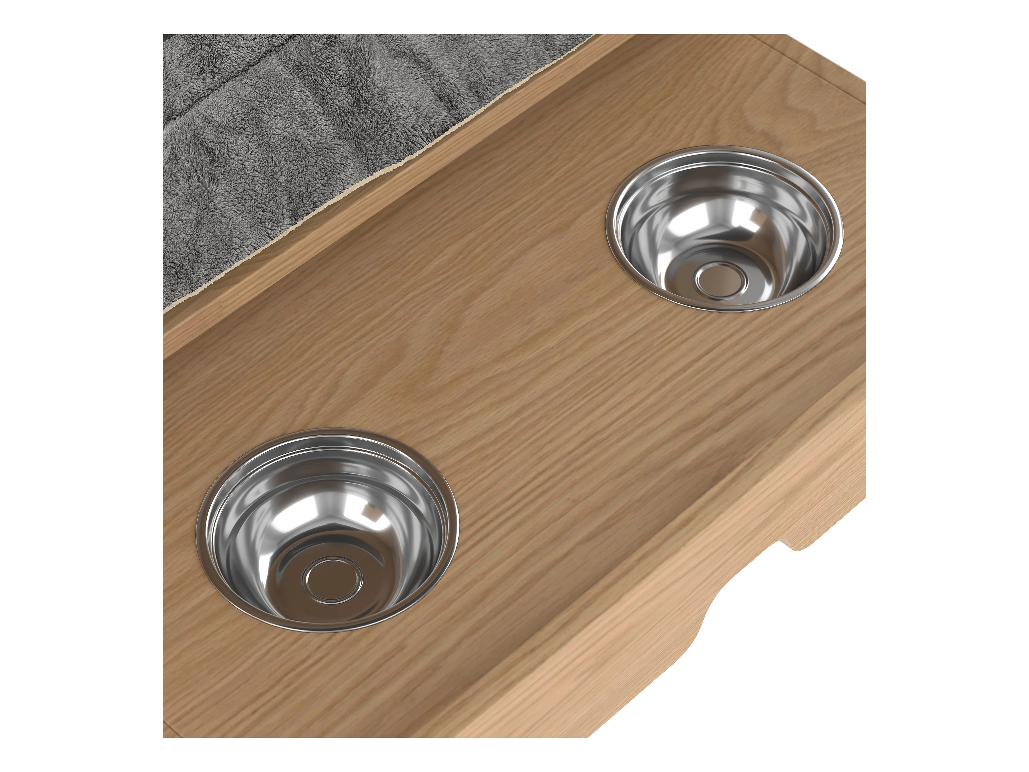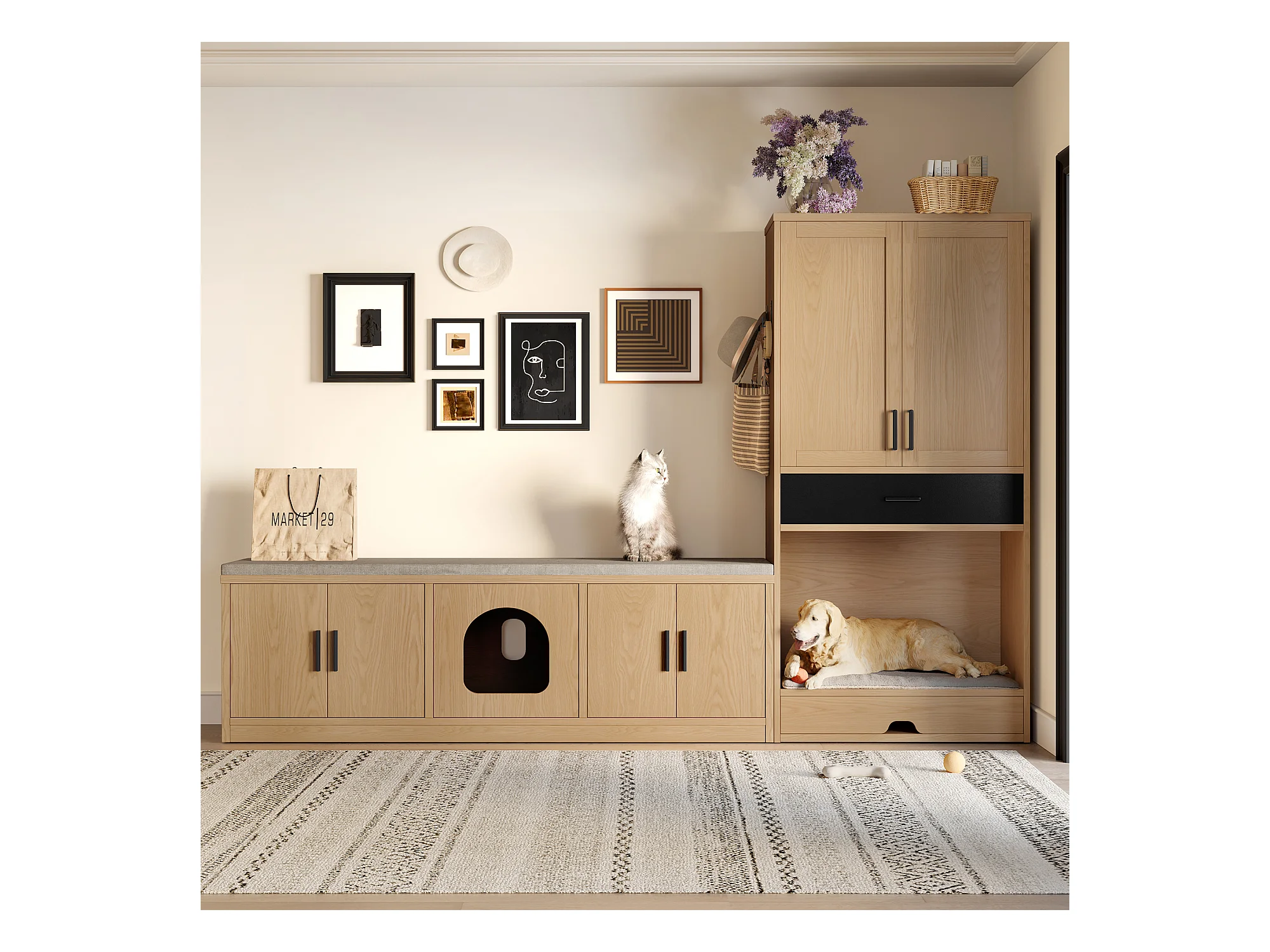 Meuble pour animaux - 79 x 40 x 160 cm - avec gamelle + panier + rangement et crochets - aggloméré - naturel