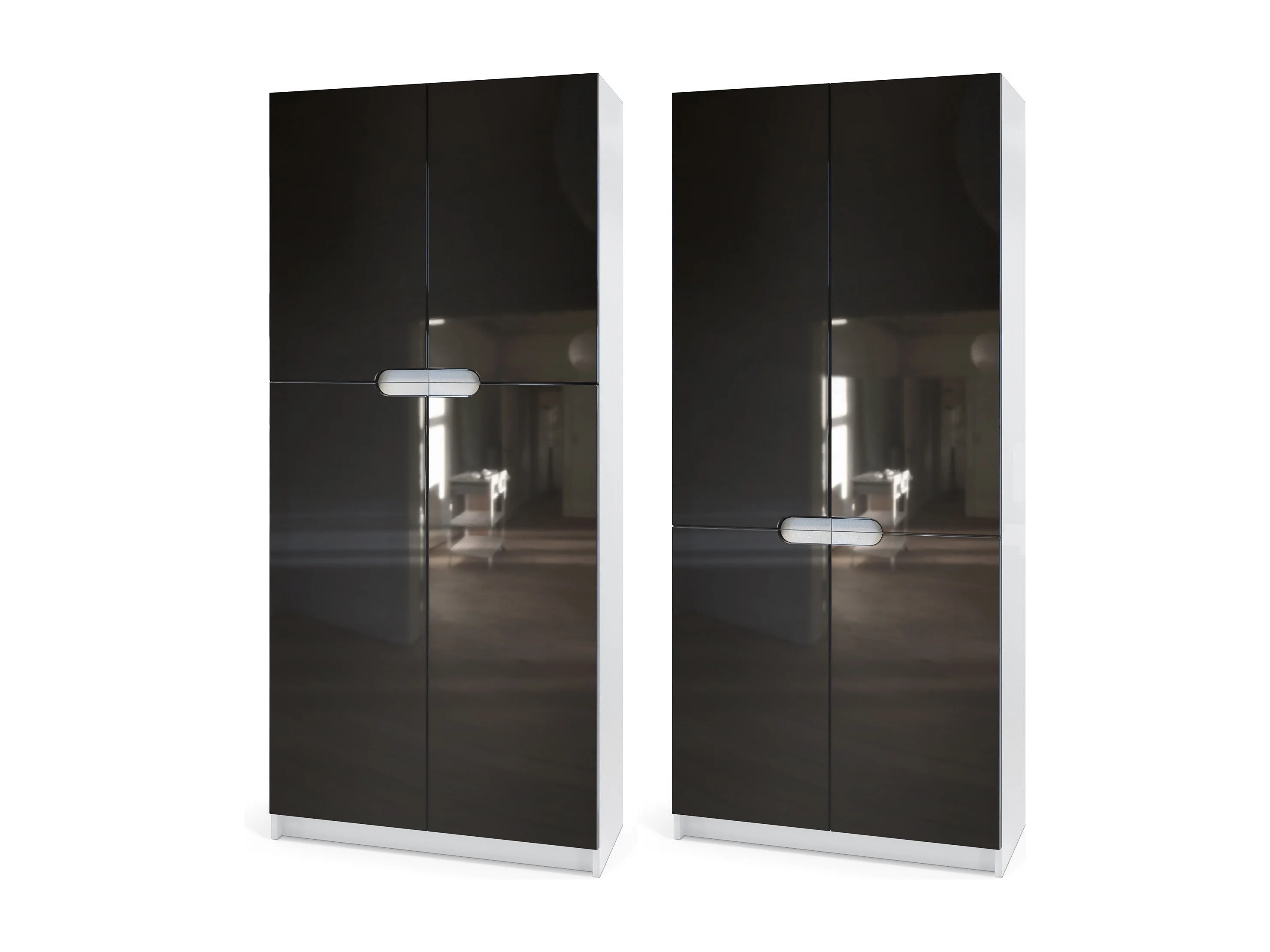 Meuble rangement bureau Logan V1, Armoire de bureau haute avec 5 compartiments et 4 portes, blanc mat/noir mat (82 x 185 x 37 cm)