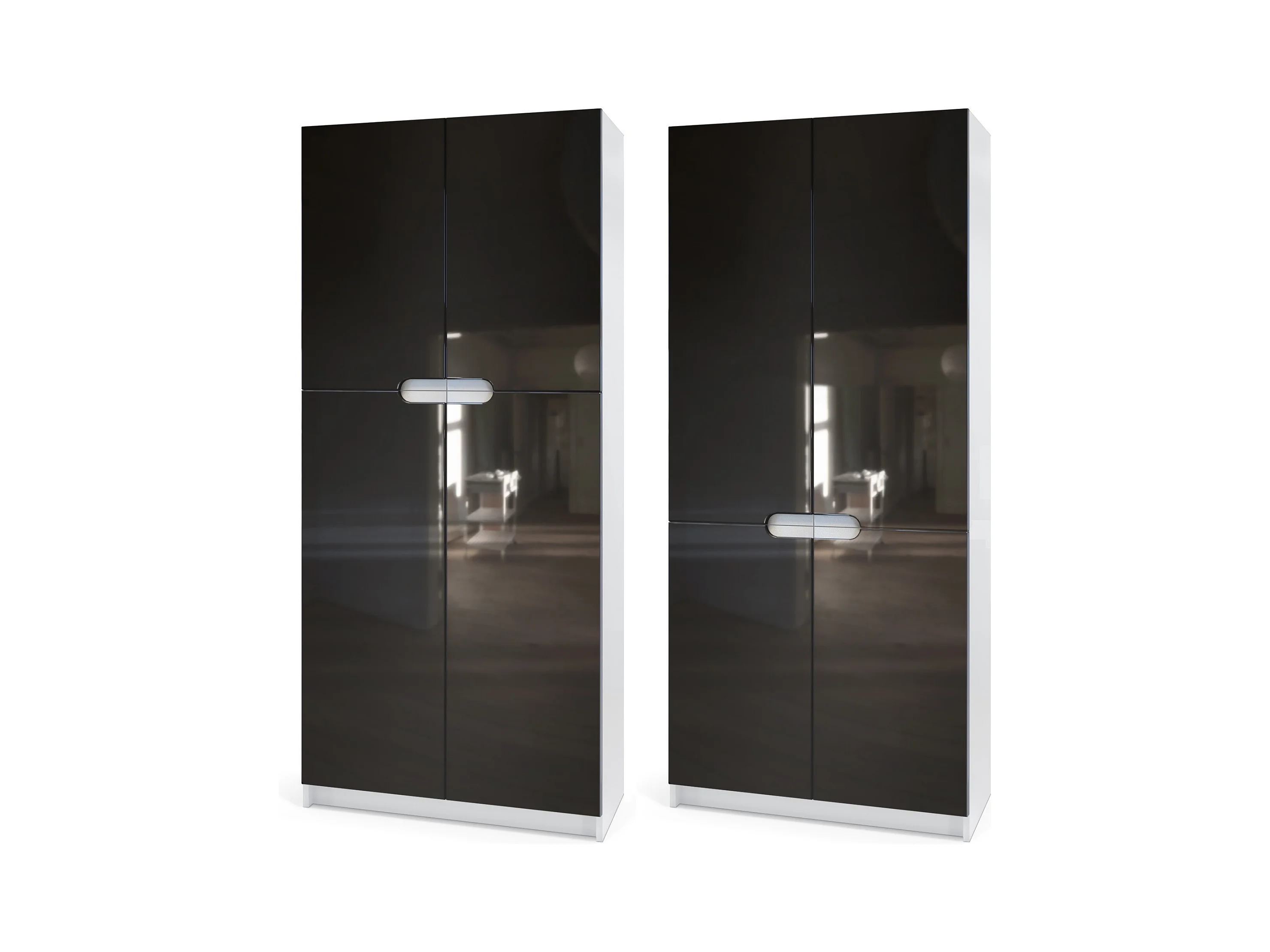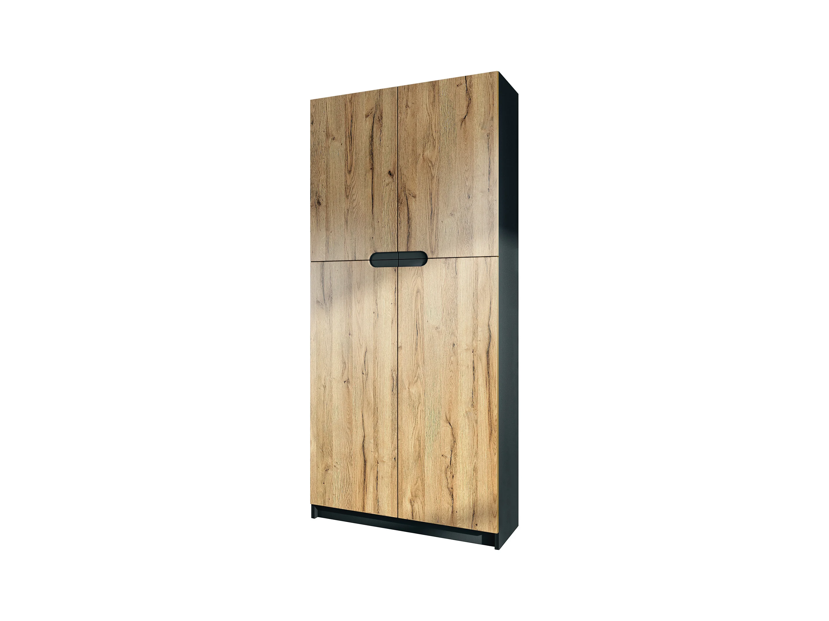 Meuble rangement bureau Logan V1, Armoire de bureau haute avec 5 compartiments et 4 portes, noir mat/chêne nature (82 x 185 x 37 cm)