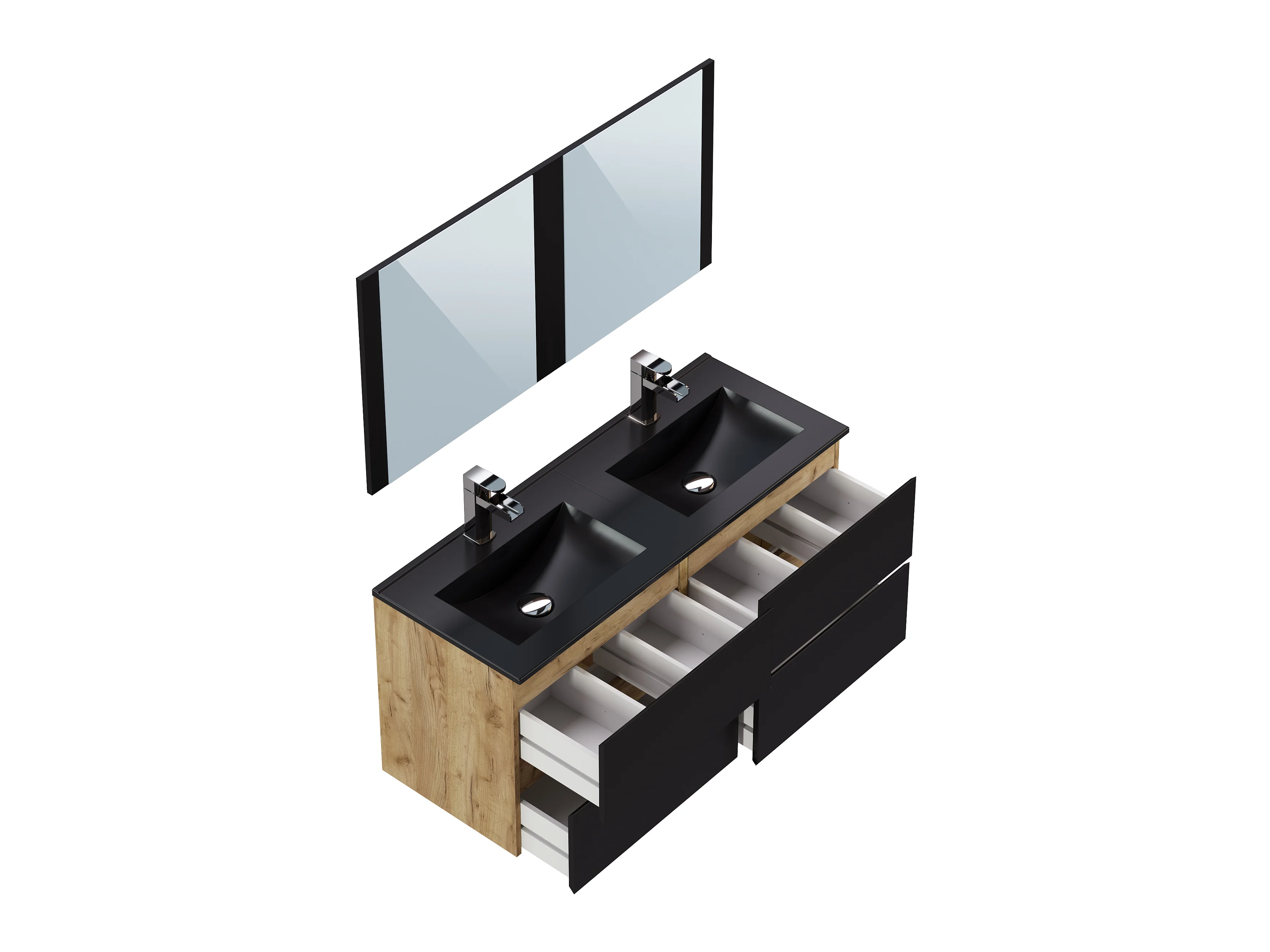 Meuble salle de bain 120cm coloris Chêne et noir - Longueur 122 x Profondeur 46 x Hauteur 57 cm