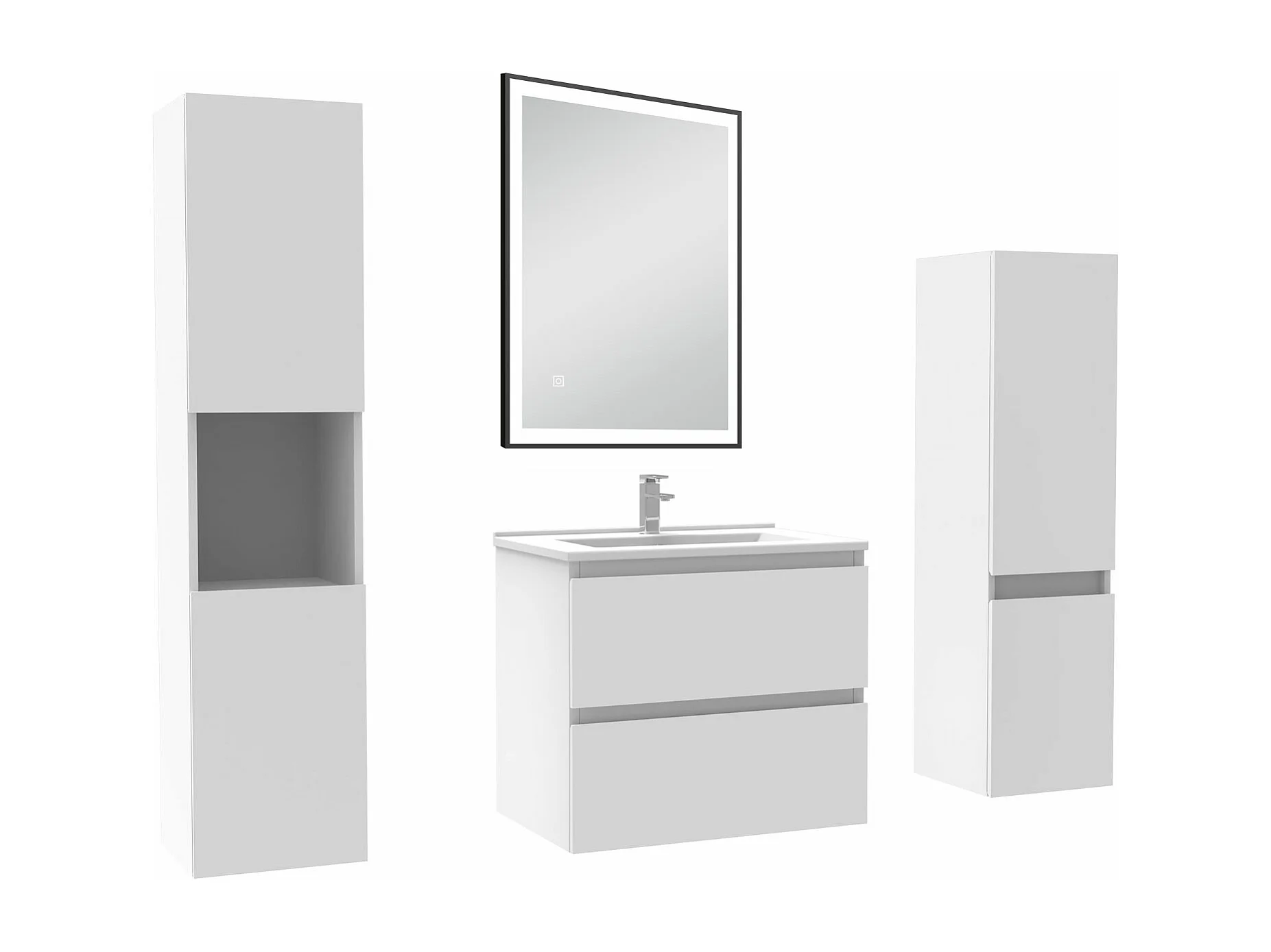 Meuble Salle de Bain 60cm avec colonne et miroir lumineux 3 couleurs blanc