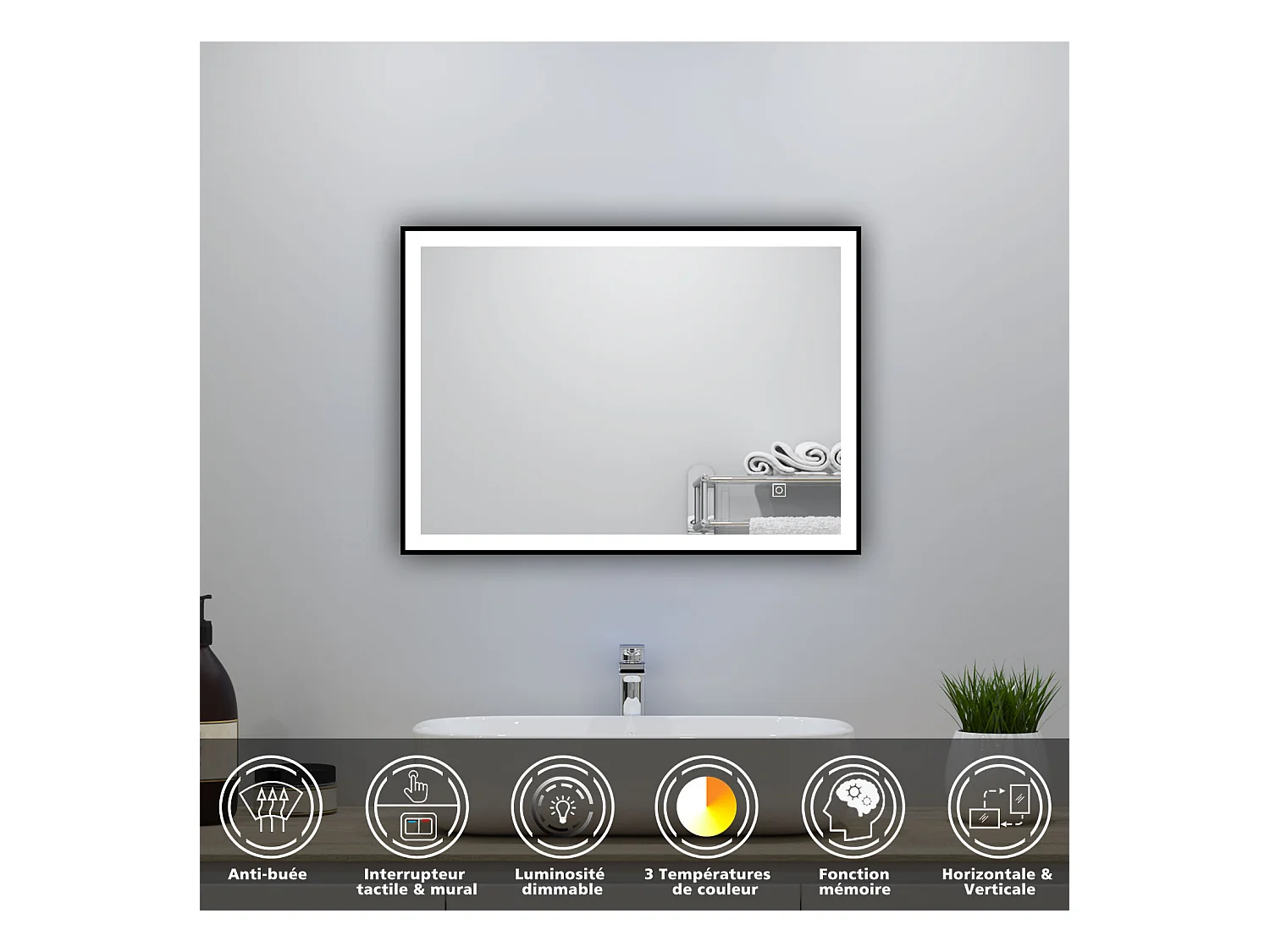 Meuble salle de Bain 60cm avec colonne et miroir mural lumineux 3 couleurs Chêne Wotan