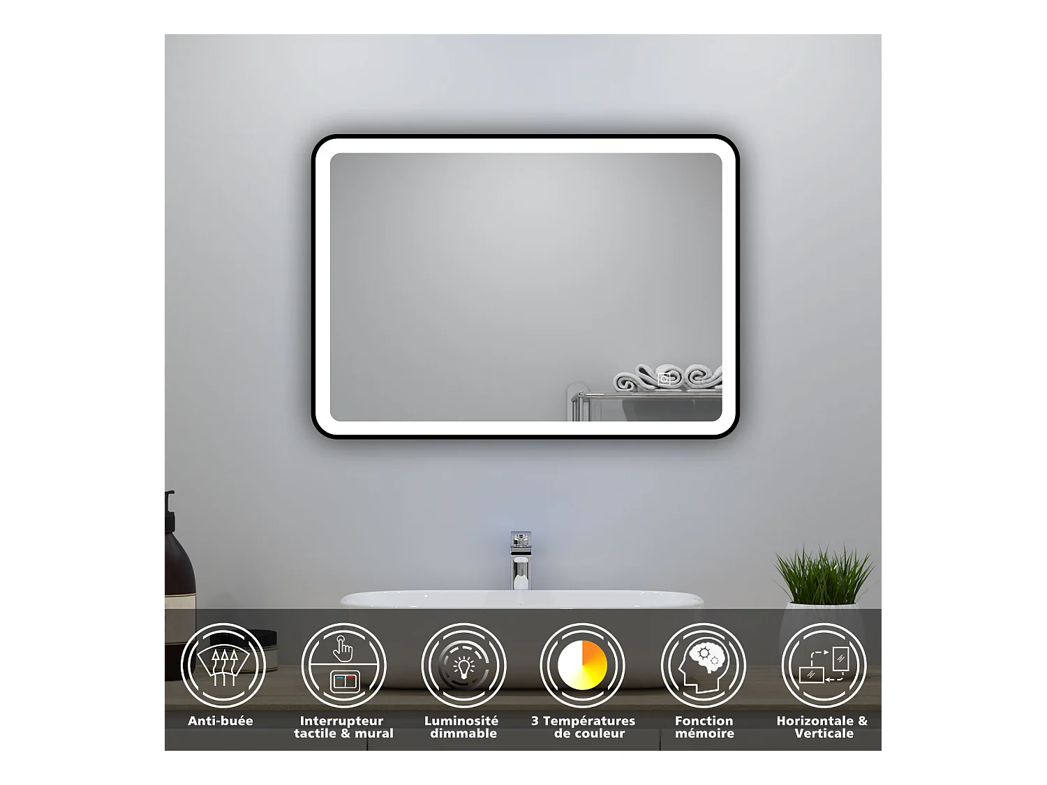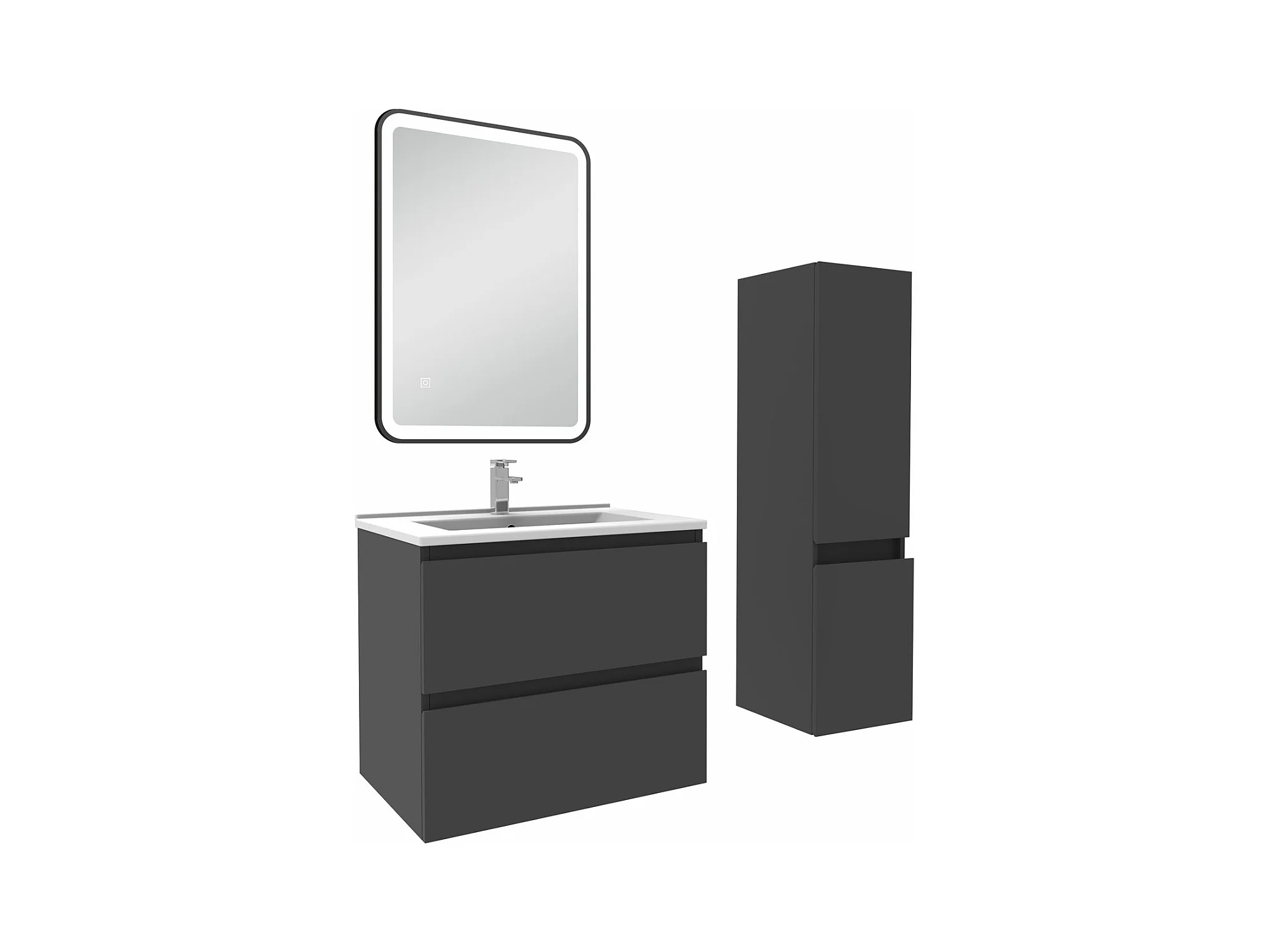 Meuble salle de Bain 60cm simple vasque avec colonne + miroir 3 couleurs Anthracite