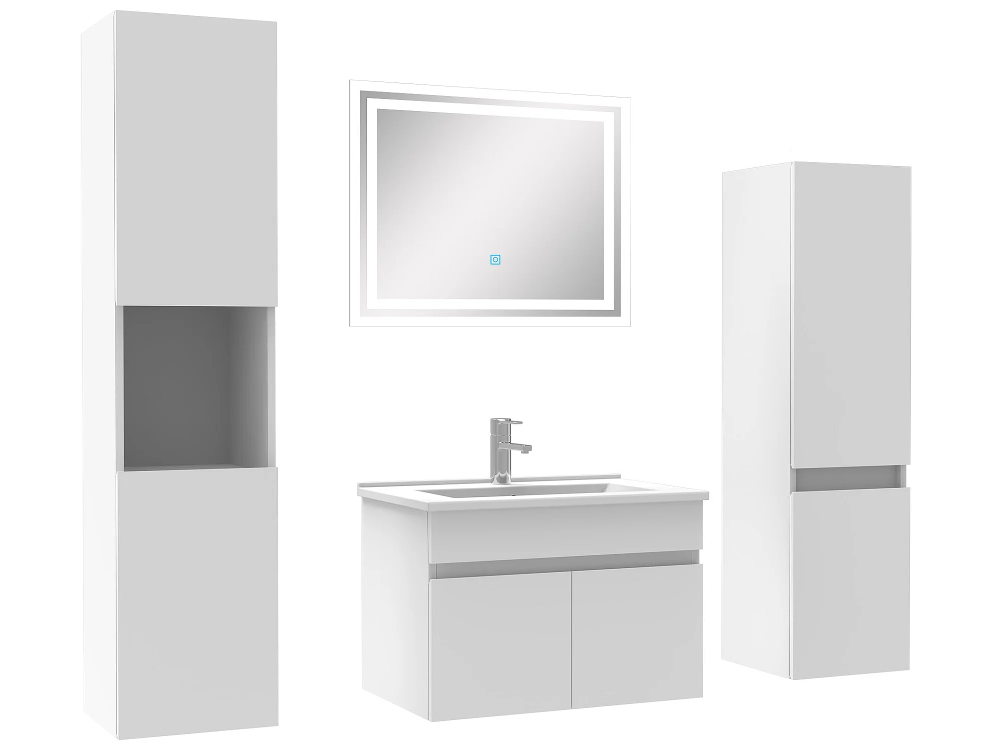 Meuble Salle de Bain Blanc 60cm simple vasque + colonne + miroir LED