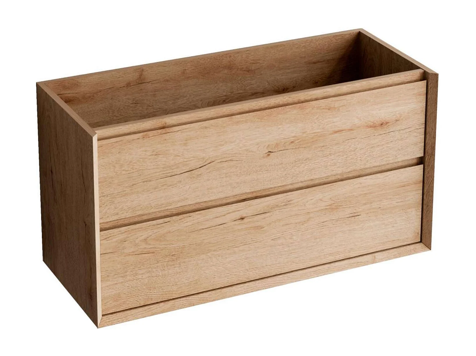 Meuble Salle de Bain COOL (101 cm x H54 x P45 cm), Plan Vasque Céramique WM, 2 Tiroirs, Chêne Naturel