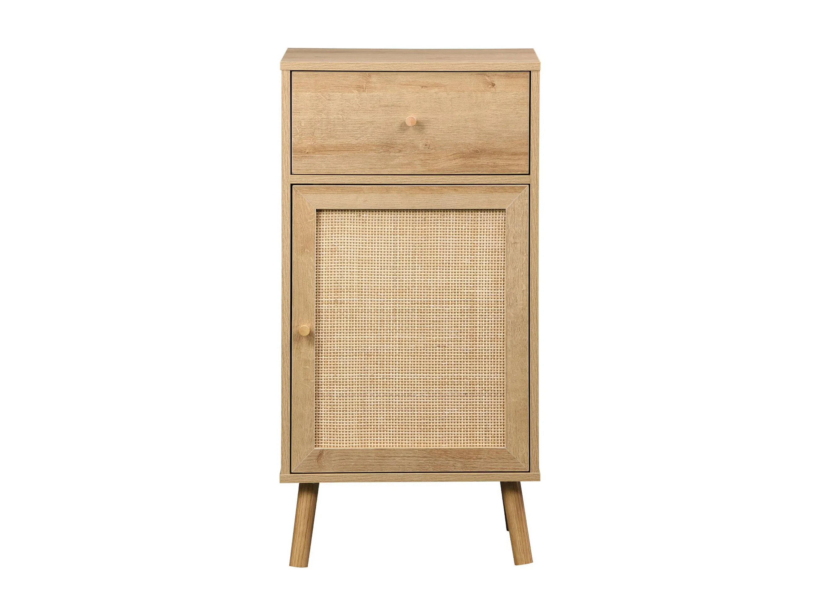 Meuble salle de bain décor bois et cannage Bohème 1 tiroir 1 étagère 45 x 36 x 90 cm naturel
